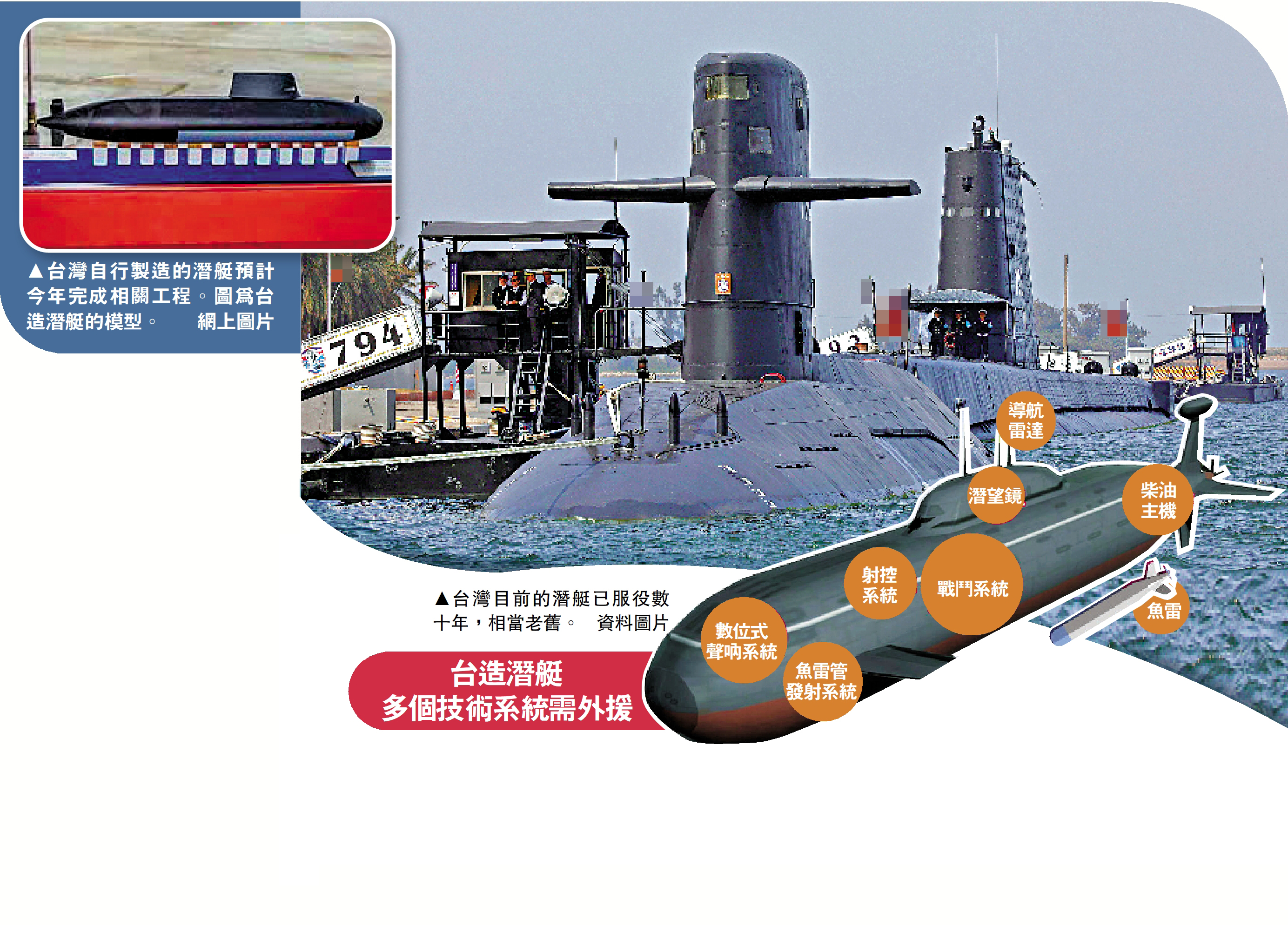 【大公報訊】據台媒報道:台灣「潛艦自造」原型艦預訂9月下旬舉行下水典禮,但島內一位非常熟悉潛艦的退役將領則表示,潛艦原型艦9月的典禮其實是「封殼」而非「下水」,因為典禮是在水泥地的廠房內舉行。他直指,民進黨當局把壓力殼封起來,讓自造潛艦有個外觀可以看就當作「下水」典禮,就是為了「大內宣」。此外,有專家表示,台灣初次自造潛艇,裝備籌獲相當困難,首艘原型艦下水,不應該配合政治上需求而趕工,否則可能影響潛艇質量,從而出現安全問題。