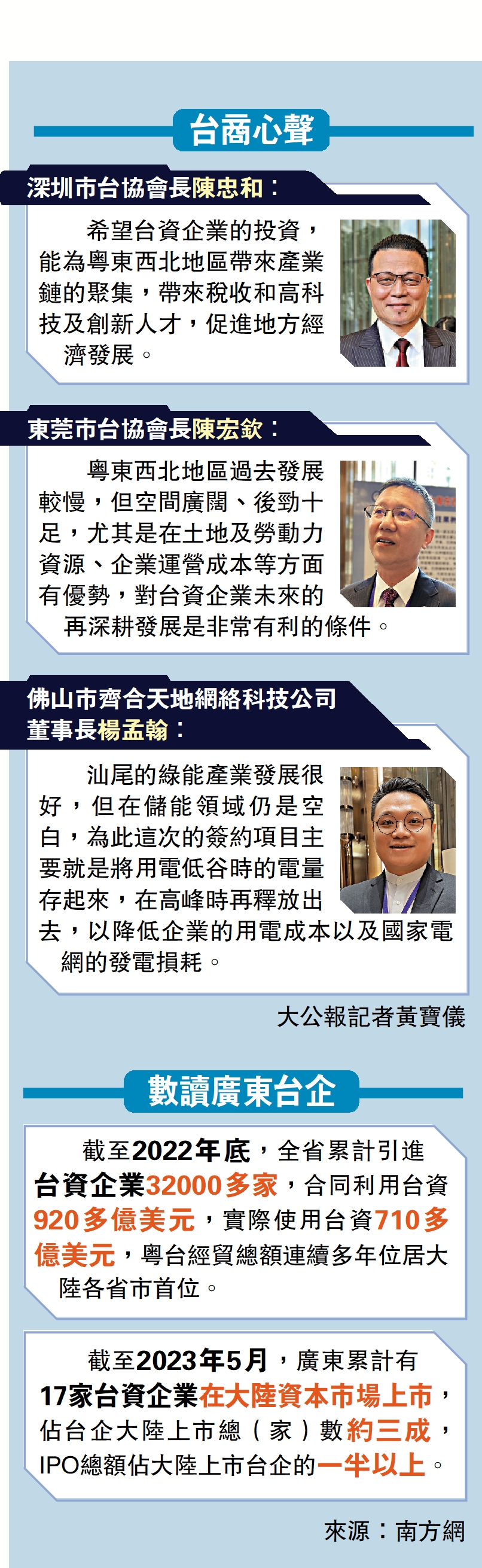 希望台資企業的投資,能為粵東西北地區帶來產業鏈的聚集,帶來稅收和高科技及創新人才,促進地方經濟發展。