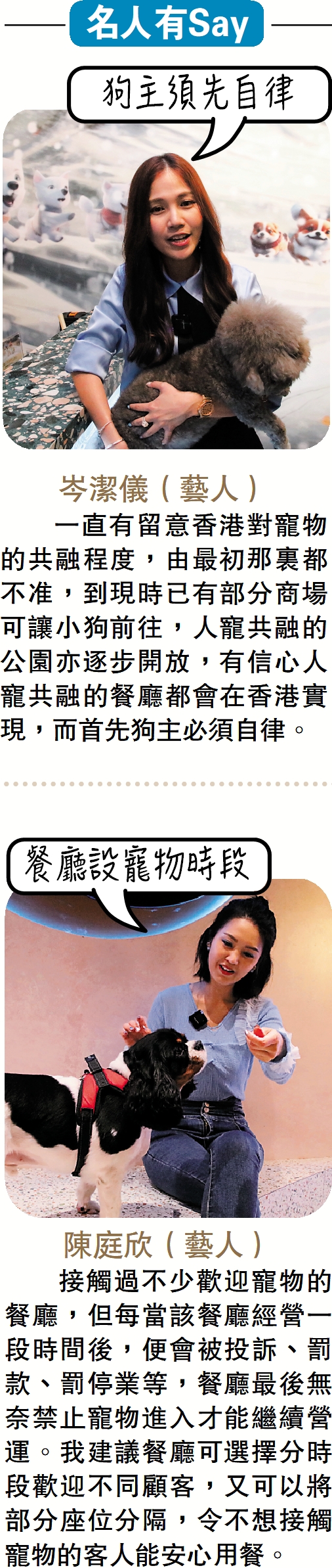 接觸過不少歡迎寵物的餐廳,但每當該餐廳經營一段時間後,便會被投訴、罰款、罰停業等,餐廳最後無奈禁止寵物進入才能繼續營運。我建議餐廳可選擇分時段歡迎不同顧客,又可以將部分座位分隔,令不想接觸寵物的客人能安心用餐。