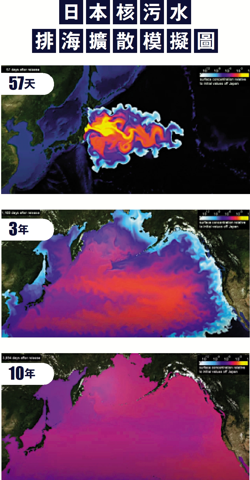 日本核污水 排海擴散模擬圖