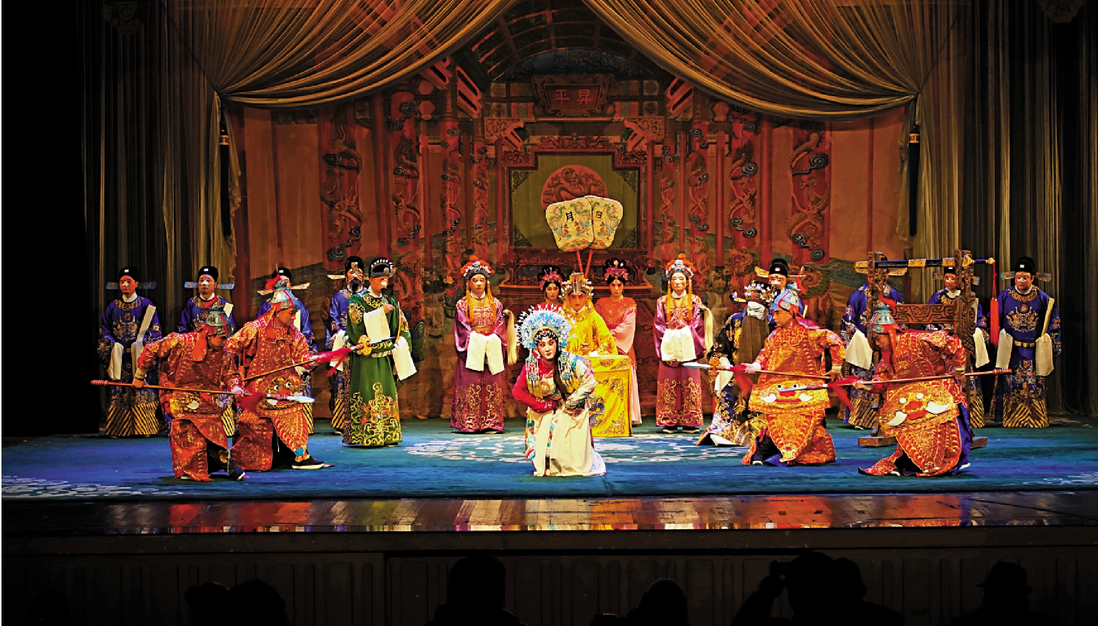 作為地方戲曲,漢劇以聲腔為基礎,充分運用武漢方言特色,「一旦失去方言特點的劇種就會暗淡以至消失,在流傳過程中,漢劇以武漢方言為基礎,講究中州韻、湖廣音。」晏曉毅又道,漢劇的音樂包括四個部分——打擊樂,曲牌、聲腔、道白(也稱唸白),打擊樂自成體系,「打擊樂起主導作用。」現場更播放漢劇經典劇目《宇宙鋒》裏朝臣們上金殿的「金殿曲」,以詳加說明。