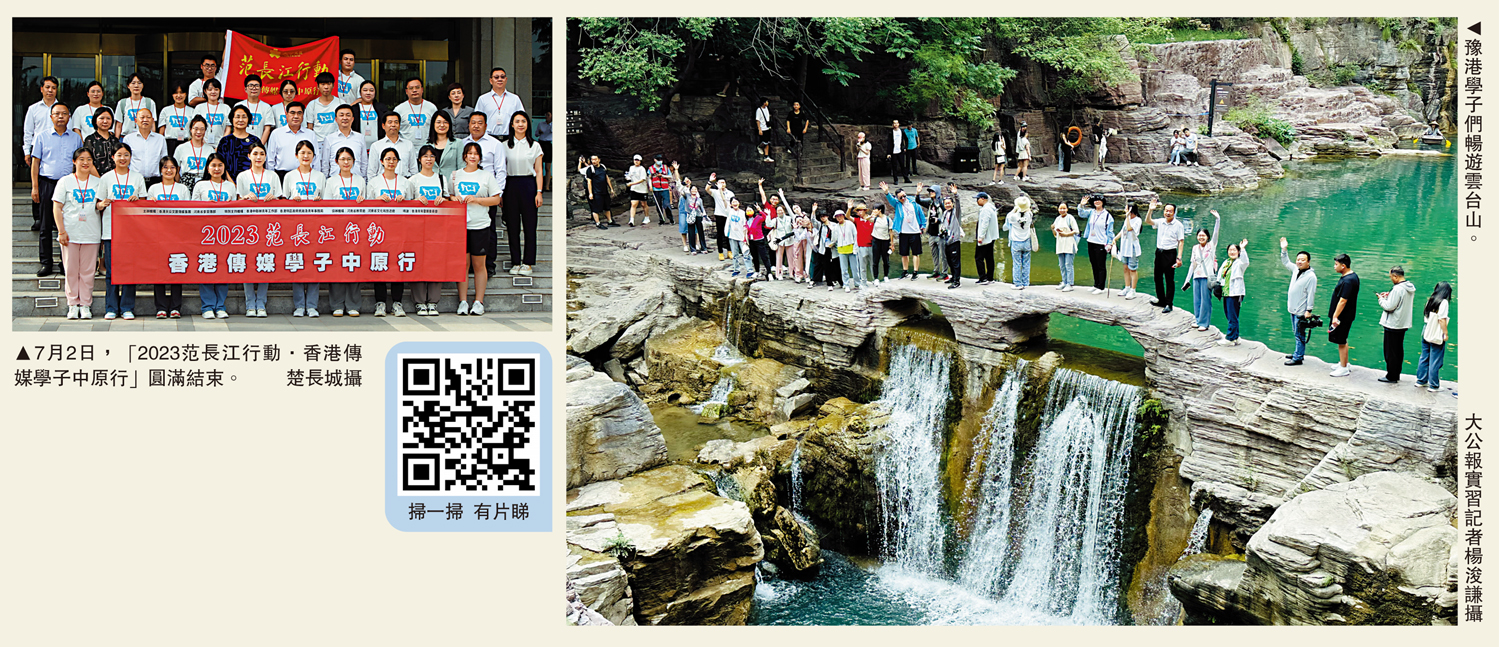 「謝謝大家,各位老師同學辛苦啦!很榮幸認識大家,這幾天太快樂啦!」「認識了這麼多河南的小夥伴,太開心啦!老家河南溫暖極了,也感受到了中國式現代化發展,有機會一定再來!」……7月2日,為期八天的「2023范長江行動——香港傳媒學子中原行」圓滿結束,來自香港的青年學子乘坐高鐵返回香港途中紛紛訴說着不捨,互道着祝福。其間,他們與河南學子,先後走進鄭州、焦作、三門峽實地採訪和交流,共同見證中原大地日新月異的發展與變化。\大公報記者馮雷三門峽報道