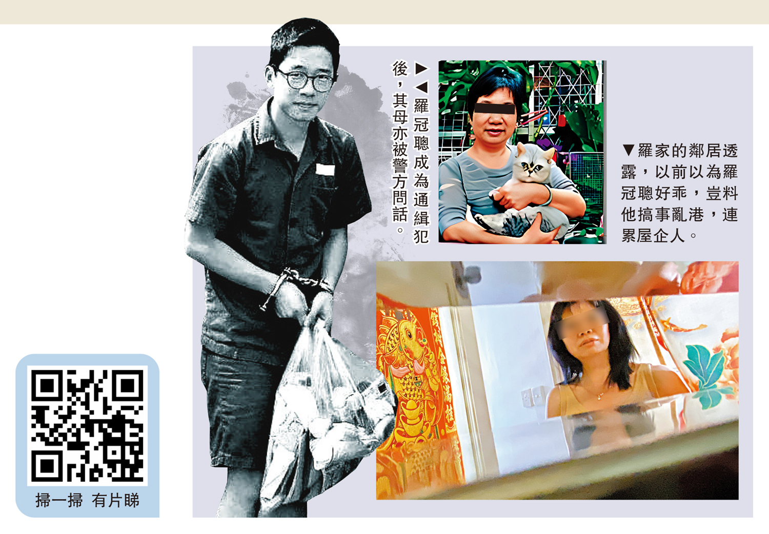 與羅家同住一層的鄰居向大公報記者說:「佢(羅)連累埋屋企人啦!搞到個阿媽出入都好似過街老鼠咁。」\大公報記者 趙明新、余風(文)突發組、調查組(圖)