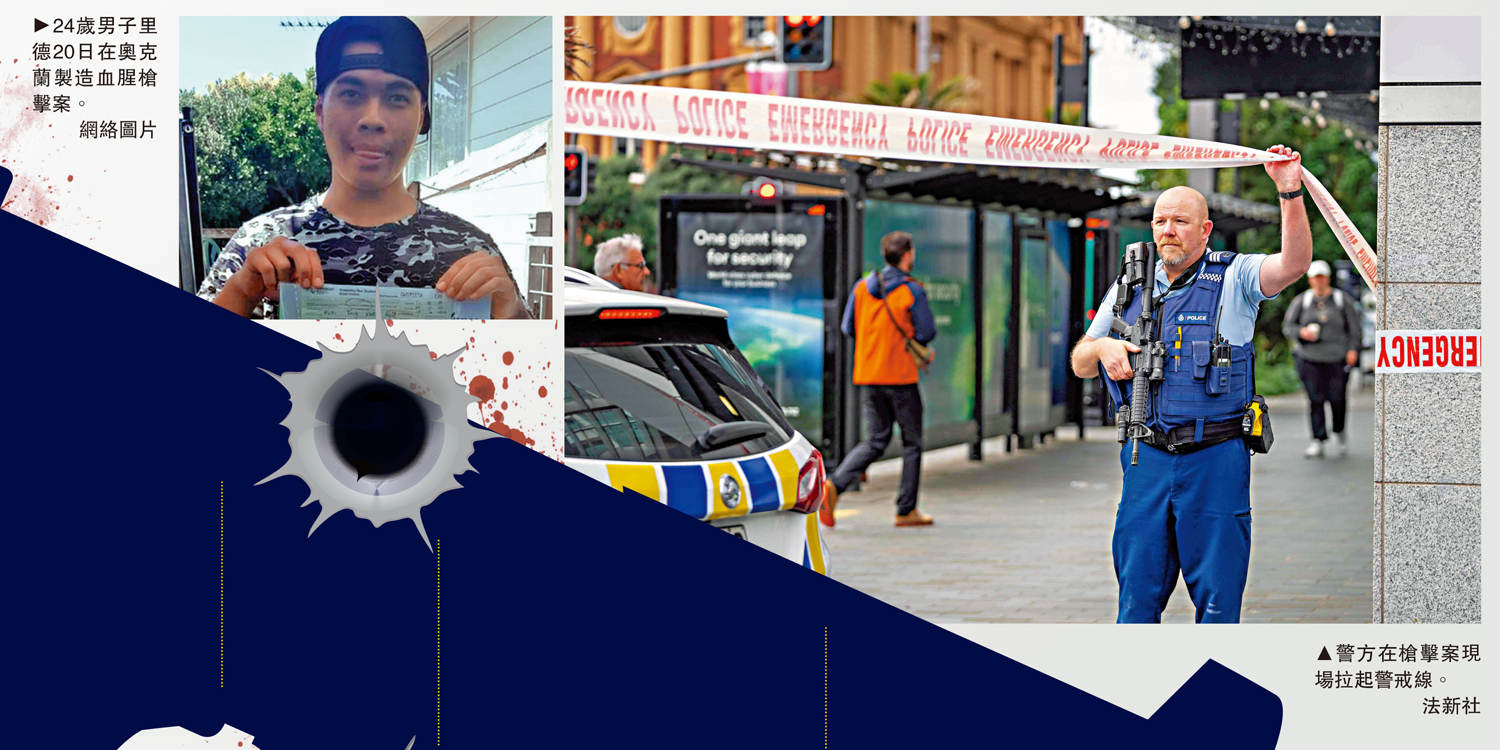 【大公報訊】綜合澳洲廣播公司、BBC、《每日郵報》報道:新西蘭第一大城市奧克蘭市中心20日發生槍擊事件,包括槍手在內3人死亡;另有至少10人受傷,包括2名警察。槍手為一名24歲男子,他因為家暴被判居家監禁,行兇時還戴着電子腳鐐。據報道,他並無持槍證,暫不清楚他如何獲得槍支。新西蘭總理希普金斯稱,這是一宗孤立治安事件,不會對公眾造成進一步威脅,當晚的2023年女足世界盃開幕式照常舉行。