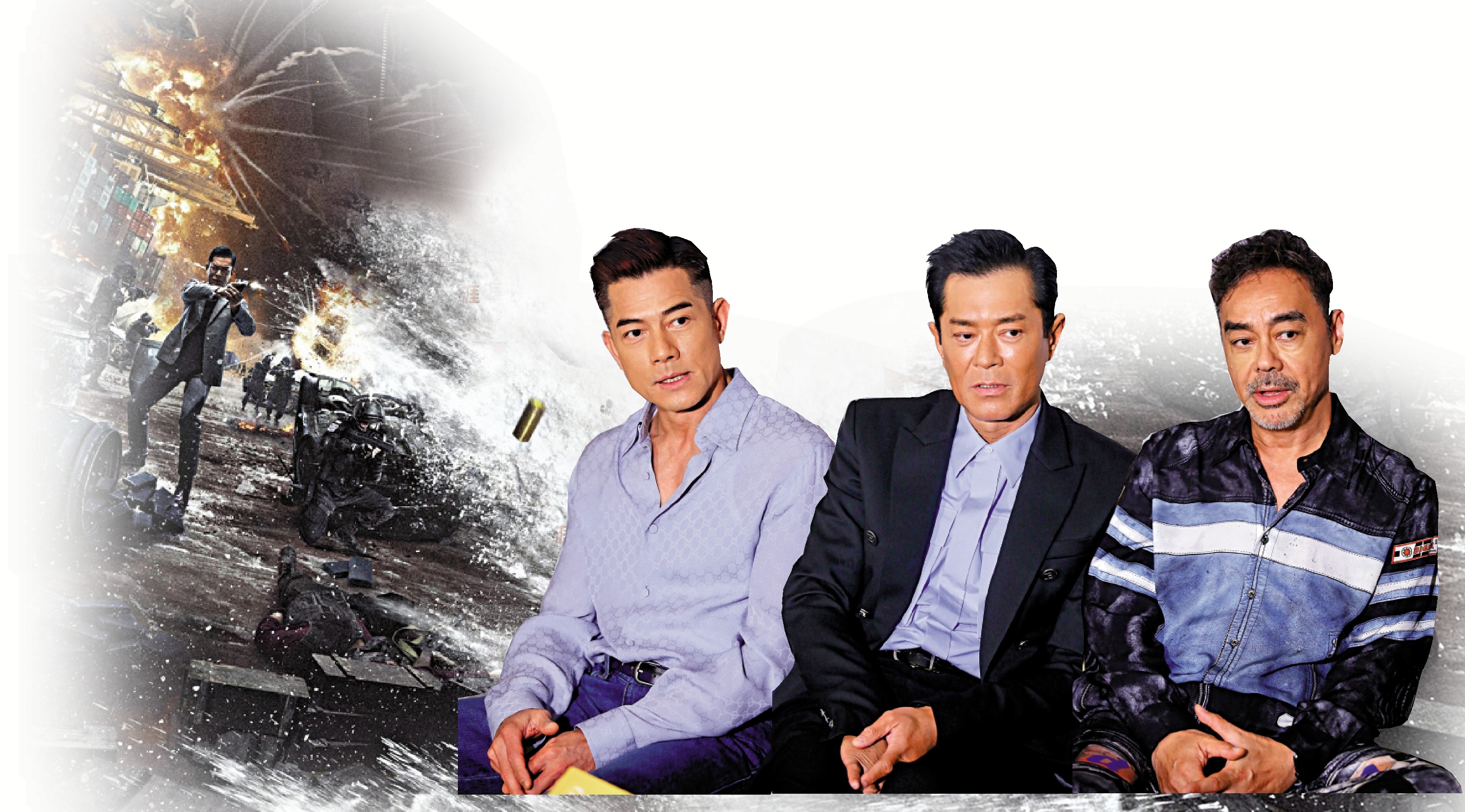 不少香港動作片拳拳到肉,演員搏盡演出。即使未曾接受過專業武術或動作訓練的演員,都會盡全力去配合。由古天樂、郭富城、劉青雲主演的電影《掃毒3:人在天涯》,戲中有連串動作場面,深潛、揸飛機、爆破、槍戰、格鬥等一應俱全。三位主演絕不欺場,親身上陣拍攝激烈動作戲,體現了香港動作片「搏命」的特色。\大公報記者 文霏霏(文) 蔡文豪(圖)