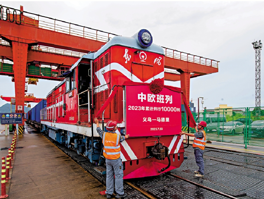 【大公報訊】據新華社報道:29日10時18分,隨着X8020次中歐班列從義烏西站緩緩開出,前往西班牙馬德里,今年中歐班列累計開行已達10000列,較去年提前22天破萬列,發送貨物108.3萬標準箱,同比增長27%。