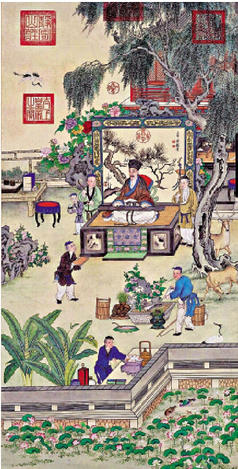 近年網絡上還出現不少對於他審美的討論,「農家樂審美」「彈幕鼻祖」,還有「Cosplay(角色扮演)高級玩家」等等。從現存的乾隆帝肖像畫中,我們可以看到他有很多「Cosplay」的造型,模仿古時的聖賢,再請宮廷畫師畫下來,這是一個很有趣的現象。在《弘曆薰風琴韻圖》(附圖)這幅作品中,乾隆讓自己走入畫中,就像是在進行角色扮演。
