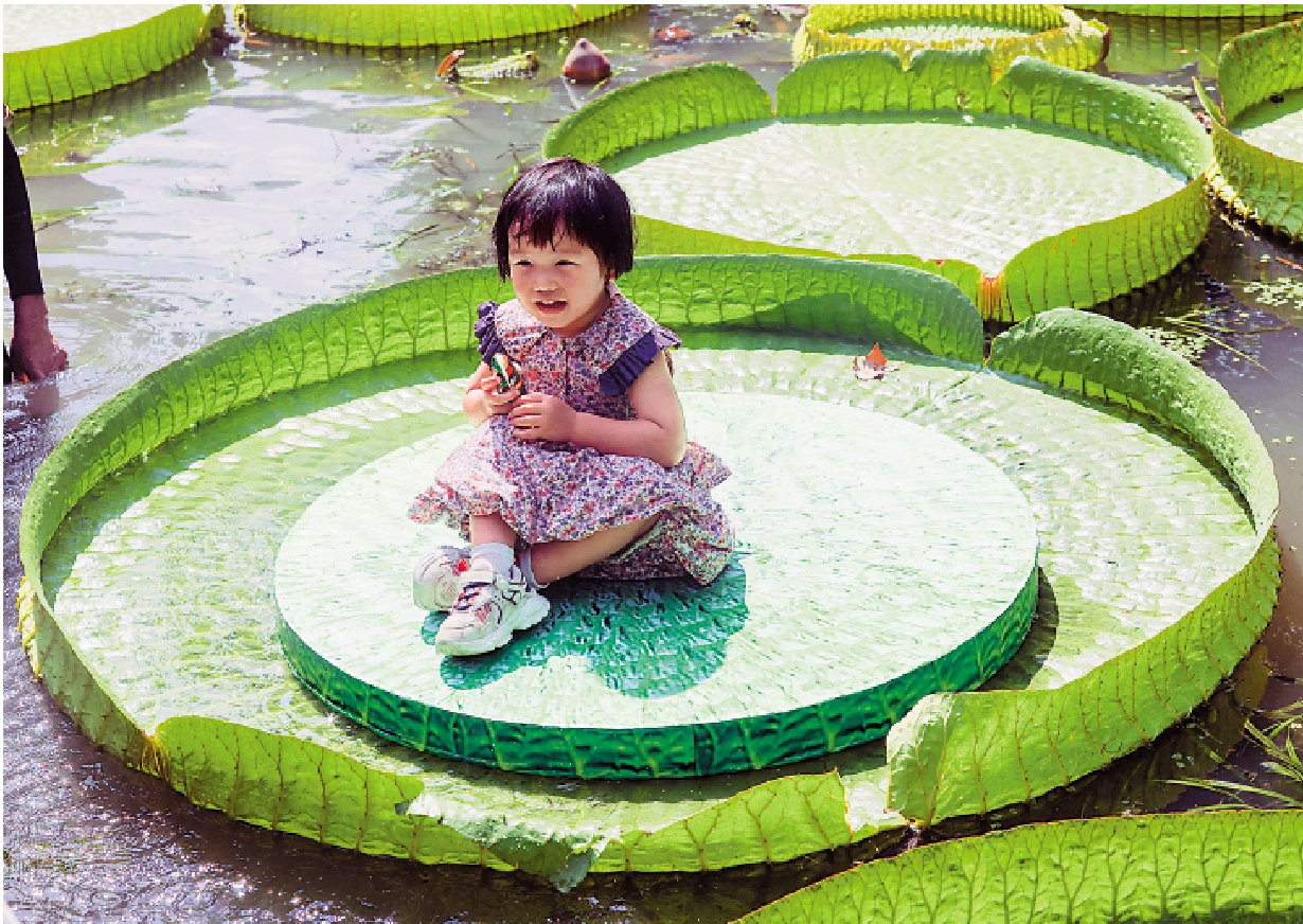 近日,中國科學院武漢植物園舉辦「寶寶坐王蓮」活動,小朋友們在工作人員守護下,依次坐上王蓮,體驗「水上漂」。