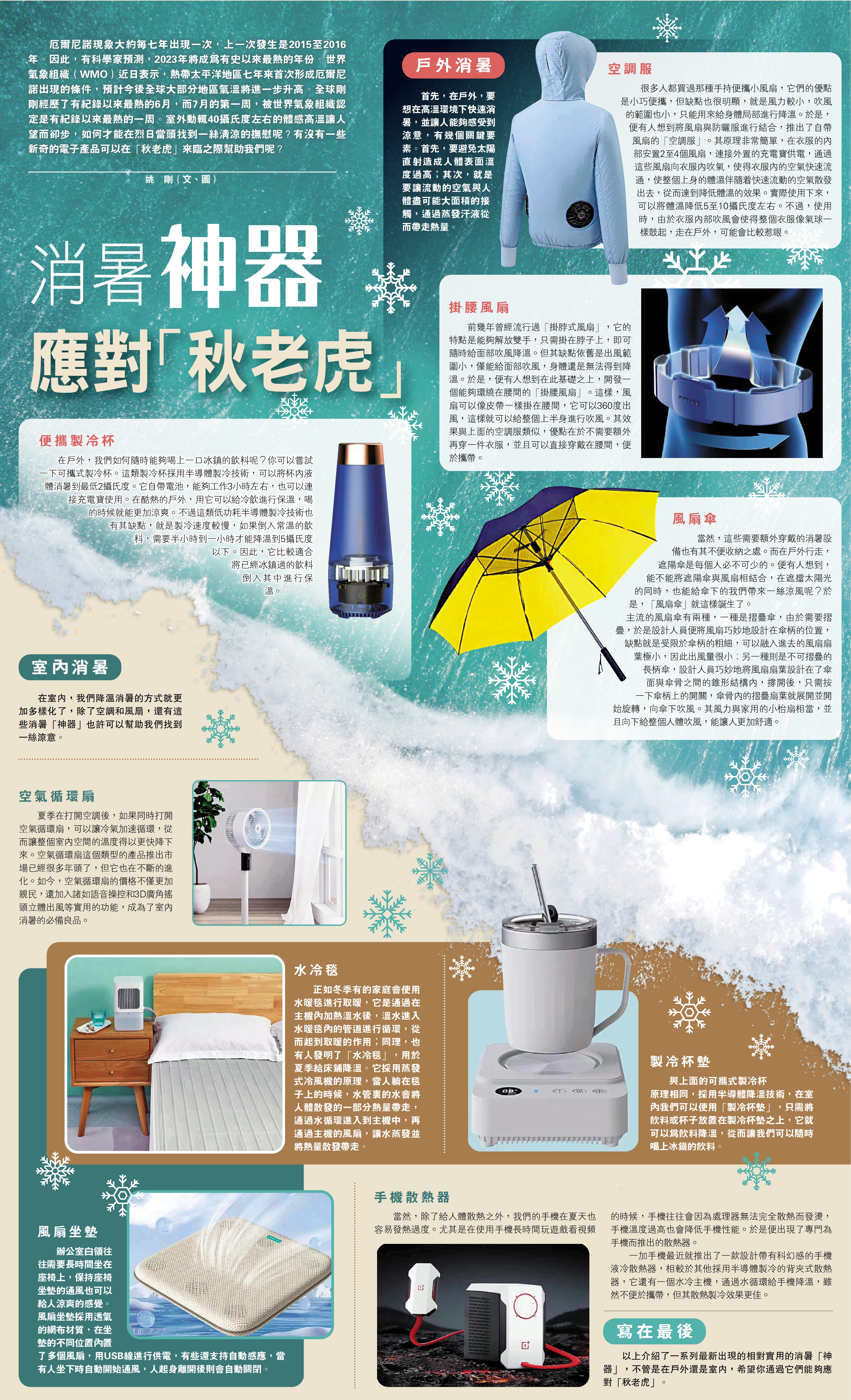 以上介紹了一系列最新出現的相對實用的消暑「神器」,不管是在戶外還是室內,希望你通過它們能夠應對「秋老虎」。