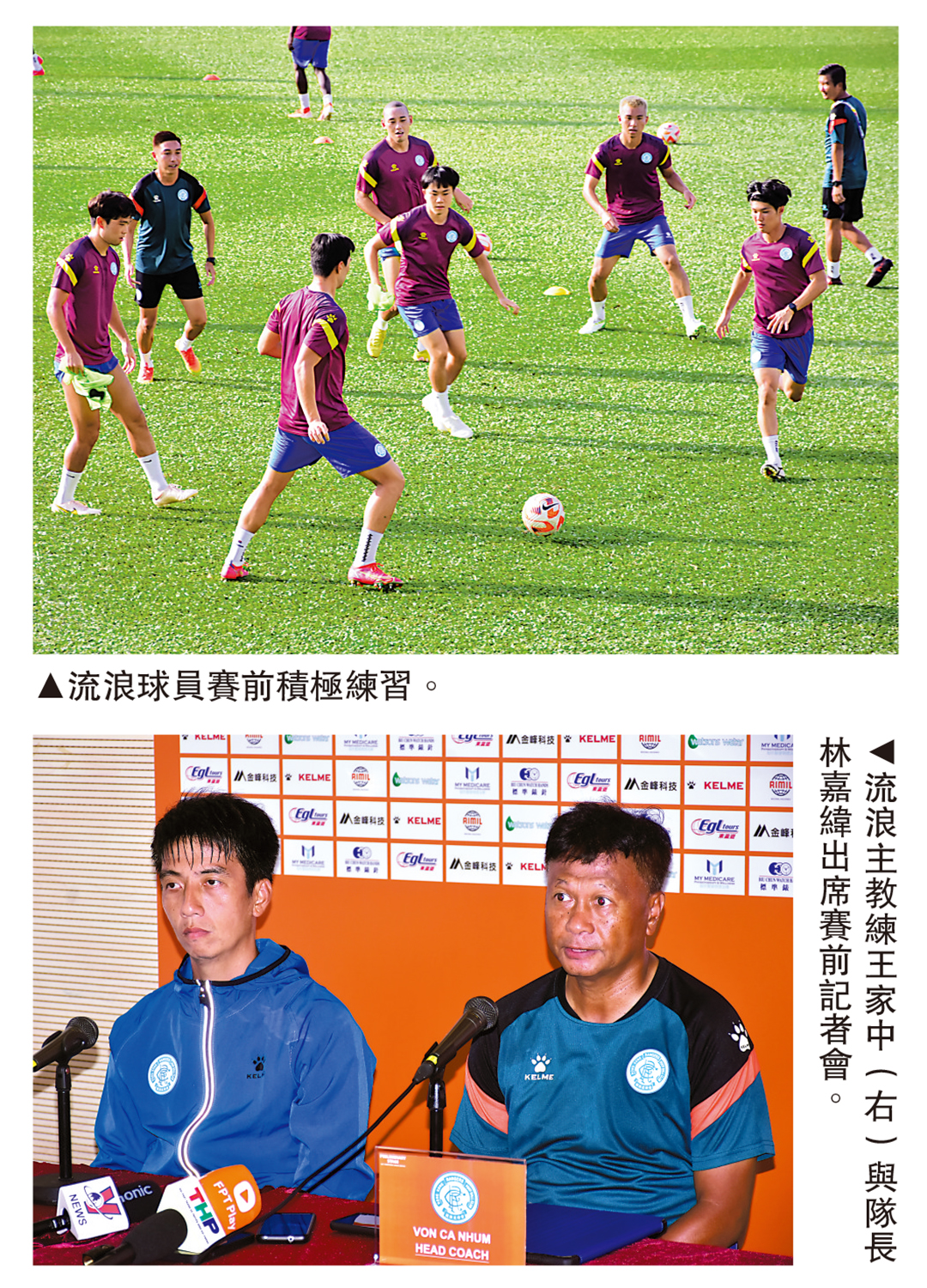 亞洲聯賽冠軍盃外圍賽將於今晚7時30分在旺角大球場上演,由港超聯球隊流浪主場出戰越南海防。流浪主教練王家中與隊長林嘉緯在昨午的賽前記者會上,皆對勝出隊史首場亞冠盃比賽表示有信心。\大公報記者 張銳(文、圖)
