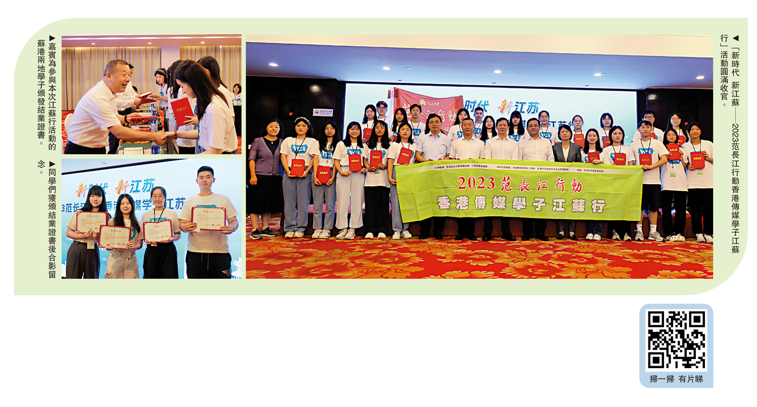 由香港大公文匯傳媒集團、中共江蘇省委宣傳部、江蘇省人民政府新聞辦公室共同主辦的「新時代 新江蘇──2023范長江行動香港傳媒學子江蘇行」活動,8月15日在江蘇泰州圓滿結束。來自香港和江蘇的24位青年學子踐行「讀萬卷書、行萬里路」的精神,在一周時間裏走進江蘇5座城市,行程1000多公里,既領略到江蘇厚重的家國歷史和璀璨的傳統文化,也感受到江蘇強勁的發展動力,更增進了兩地學子的互相了解和友誼。香港學子們在這次旅程中參訪工業園、了解國產超級計算機發展,目睹祖國日新月異的發展成就,深感振奮,倍感自豪。 \大公報記者 賀鵬飛(文﹑圖)