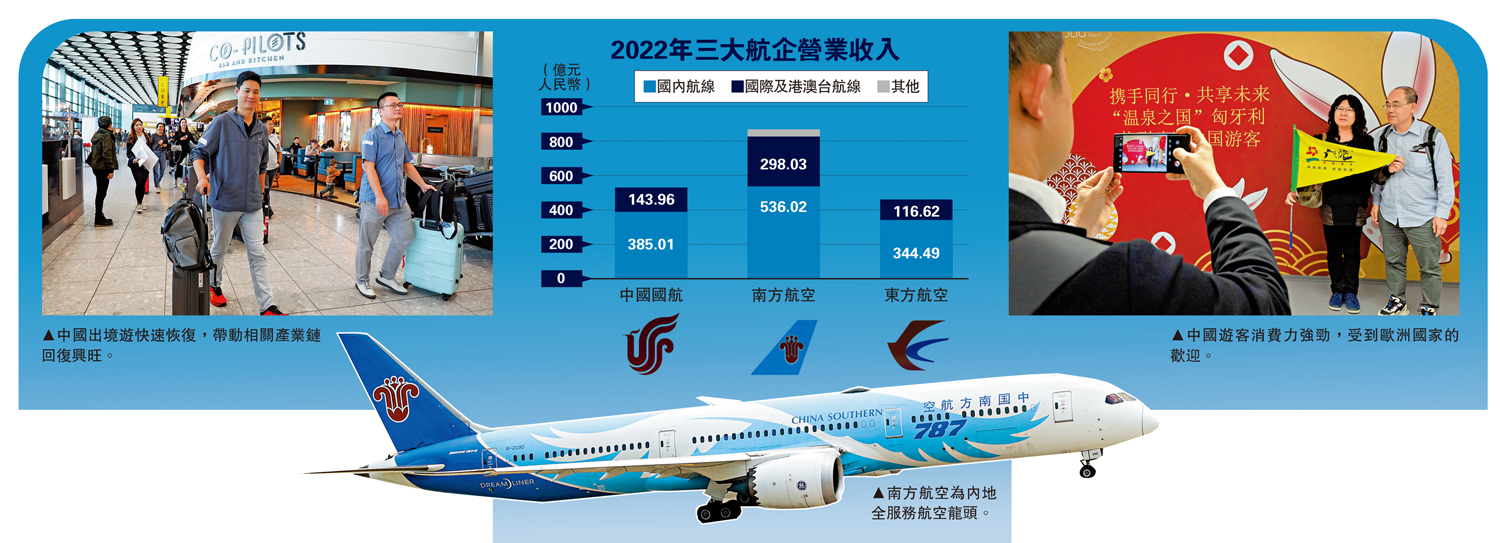 光大證券國際證券策略師伍禮賢向《大公報》表示,有關政策將令航空、酒店及旅遊平台行業直接受惠。他特別看好中資航空股前景,主因是出境地區增加,將刺激航班需求,且上半年有關航空公司復甦理想,國際線增加明顯,相信在政策紅利下,下半年復甦表現更佳。在中資航空股中,他看好南方航空,因其上半年虧損已大幅收窄,且運力已恢復到疫情前很高水平,預料在政策加持下,未來將有不俗表現。