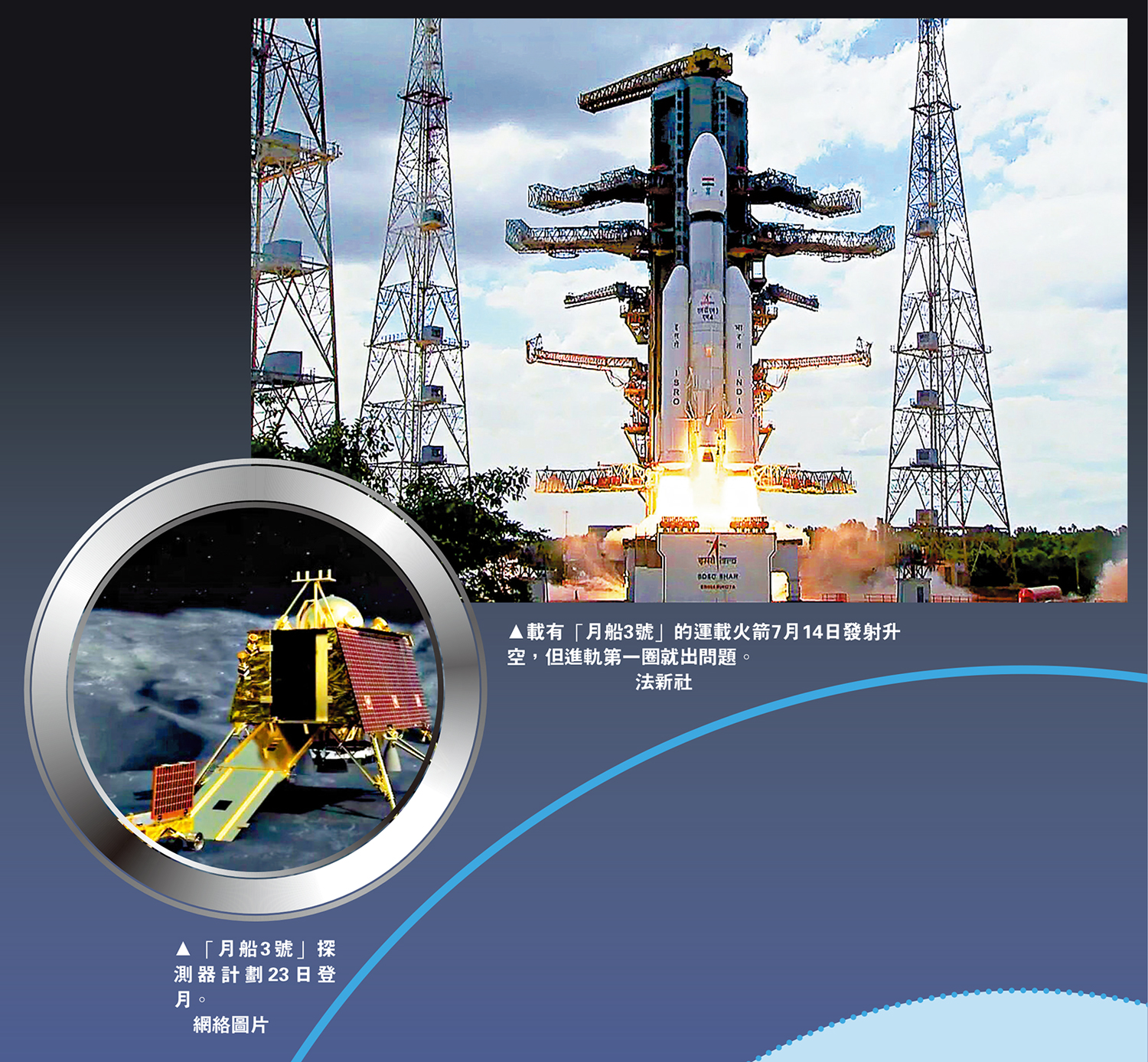 印度「月船3號」探測器7月14日下午發射升空,計劃8月23日登陸月球南極。但這項任務出師不利,「月船3號」發射後第一圈就險些低過地球卡門線,墜入大氣層。