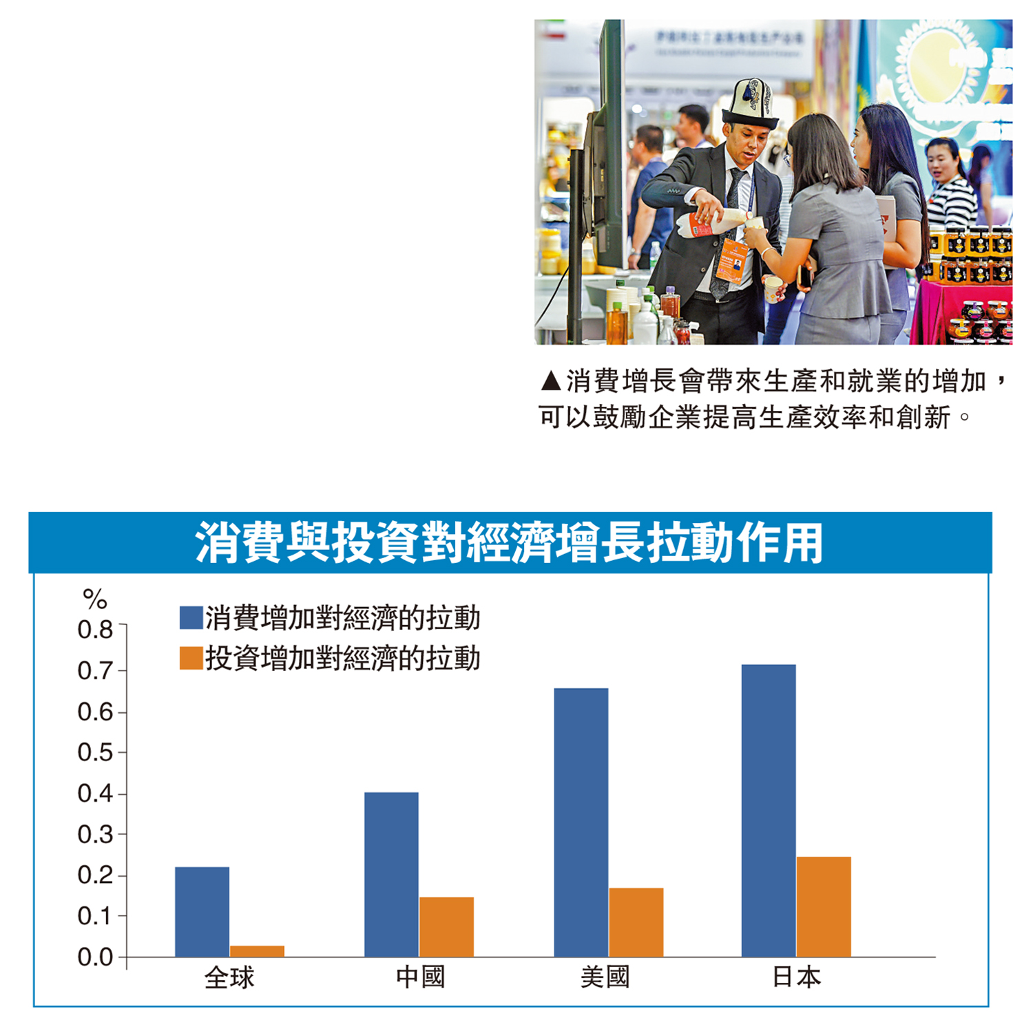 1)每一個百分點消費增長比投資增加可以驅動更多的經濟增長。就全球平均水準而言,在考慮到國家差異及年份差異後,每1%的消費增長可以驅動0.225%的經濟增長,而1%的投資增長將帶動0.03%的經濟增長。