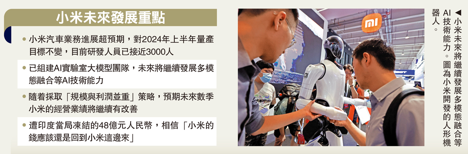 •隨着採取「規模與利潤並重」策略,預期未來數季小米的經營業績將繼續有改善