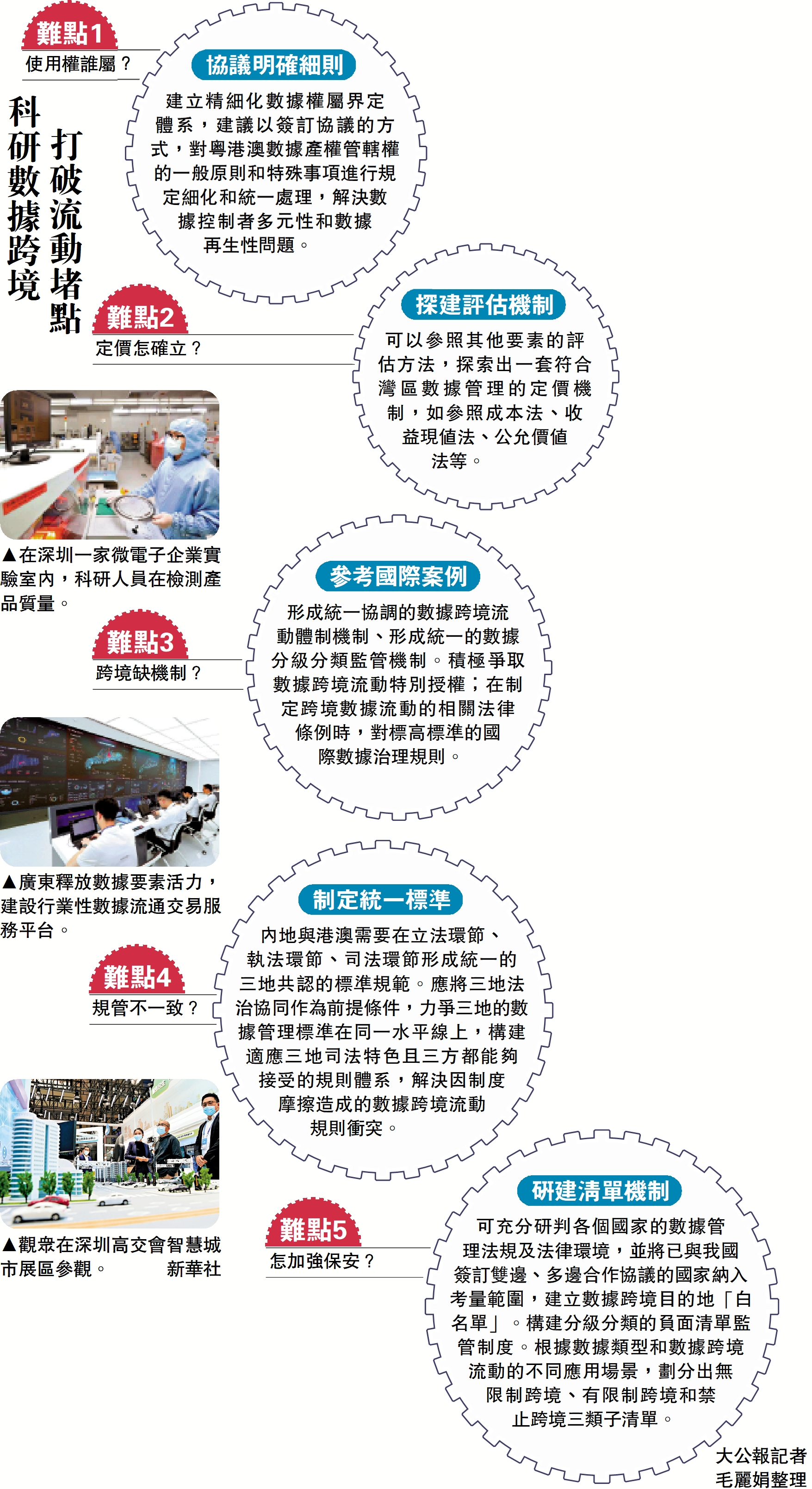 形成統一協調的數據跨境流動體制機制、形成統一的數據分級分類監管機制。積極爭取數據跨境流動特別授權;在制定跨境數據流動的相關法律條例時,對標高標準的國際數據治理規則。