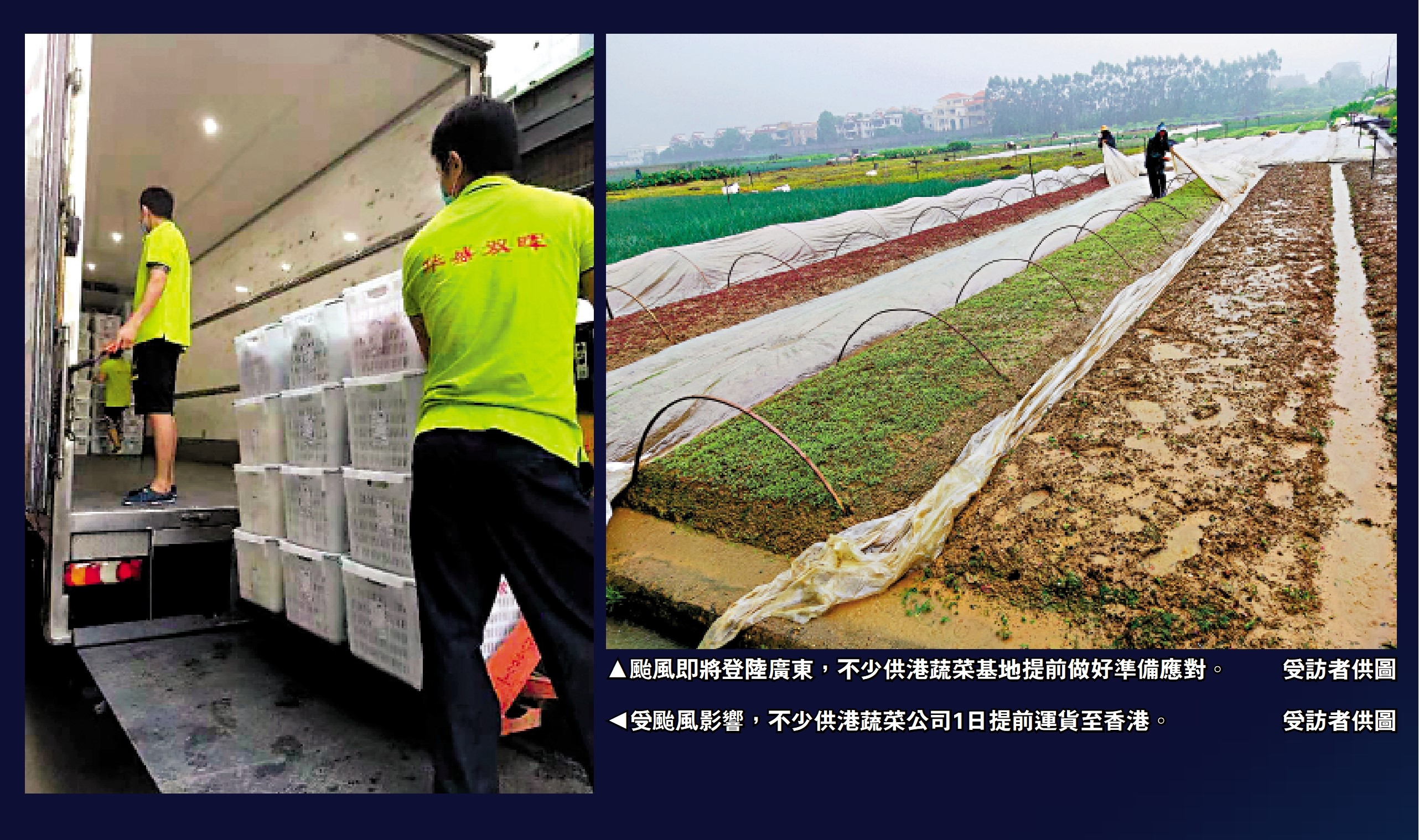 「受颱風影響,這兩天香港客戶下單多了一些,今天(1日,下同)的訂單量已經恢復到和平常差不多,估計香港市場那邊供應量比較充裕。」廣東供港蔬菜企業雙暉農業科技有限公司經理謝少帆告訴記者,公司正常大概每天運送5車約35噸菜心等葉子菜到香港。「我們唯一擔心打風對運輸造成影響,所以我們也會為提前出貨做準備。不過還好今天一切順利,也沒有收到運輸公司和市場停工通知。不少同行還提前到早上6點到8點將供港蔬菜運輸過關。」他介紹,往年供港蔬菜基地遇到颱風天,也會提前出兩天貨或當天提早出貨,保障供應。