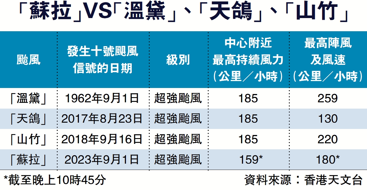 「蘇拉」VS「溫黛」、「天鴿」、「山竹」