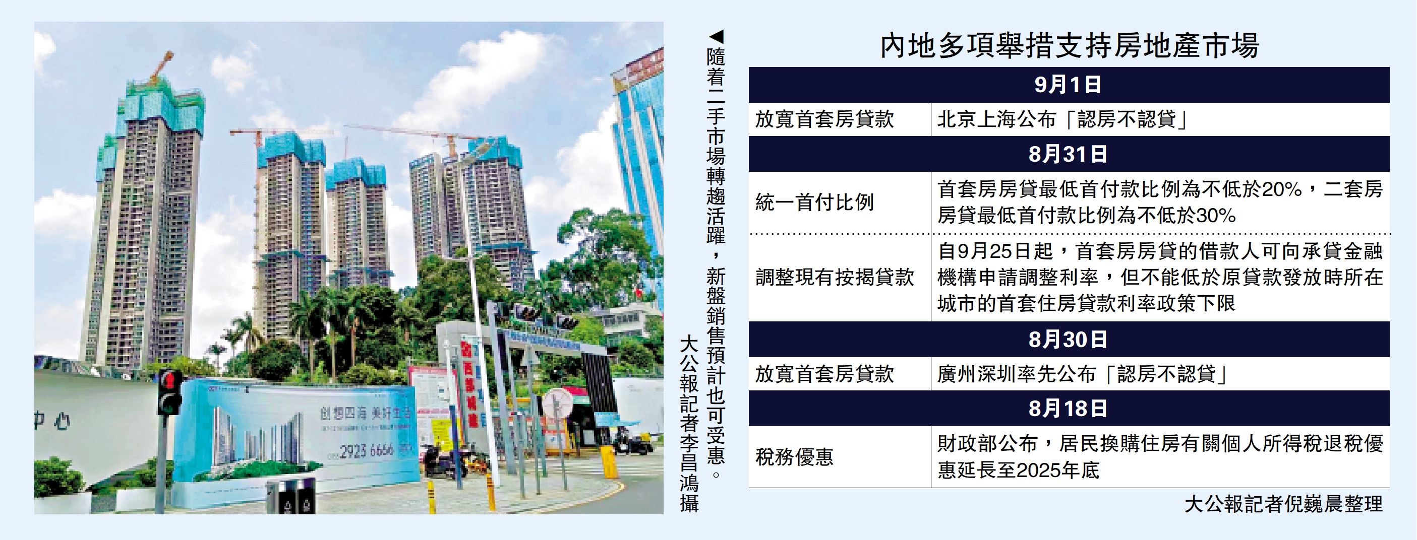 對於樓市前景,開發商普遍相對樂觀。據江少傑觀察,周末看房量是有明顯的上升,以及買房諮詢量也有所上升,相信該政策有利促進市場穩定。盧文曦也坦言,「一線城市是內地樓市的風向標,預計一線城市成交反彈的高度和持續性會好於其他類型城市,市場信心的回歸將對市場情緒的穩定起到推動作用」。