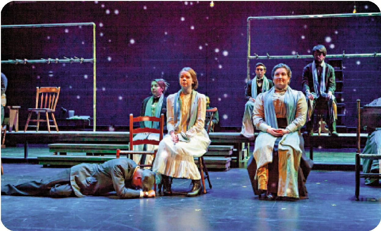 《我們的小鎮》也沒有布景,連幕布也不用,觀眾一進場就看見舞台上有一張桌子,幾把椅子。