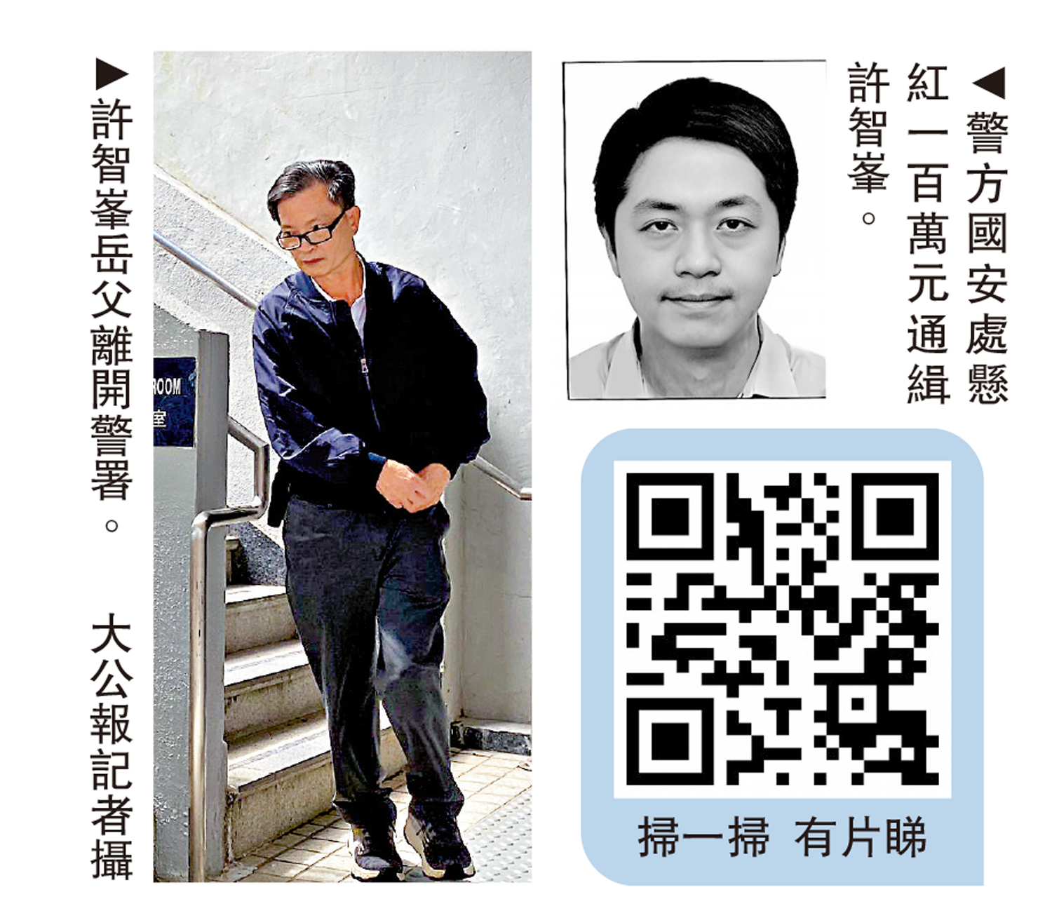 國安處人員昨早突擊搜查許智峯岳父、岳母及許妻子的大哥位於元朗區的住所,並分別將他們帶返青山及元朗警署調查,調查三人是否仍然與許智峯有任何形式的聯絡或是金錢往來。在下午約2時半,許智峯岳父離開屯門青山警署,快步沿輕鐵站再往兆禧苑方向離開,未有任何發言。國安處指出,相關行動仍在進行中,不排除會有其他執法行動,包括拘捕。執法部門的行動會按實際情況,依法處理。
