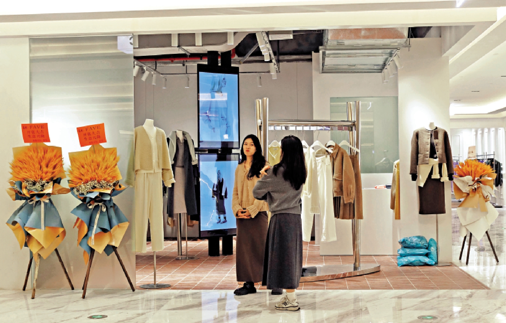 正式試運營的韓國apM Luxe項目,位於廣州apM時代國際服裝城2樓。記者所見,項目空間達到2萬平米,整體布局開闊明亮。商場內播放着韓語流行曲,不少打扮入時的韓國服裝品牌主理人穿梭其中。