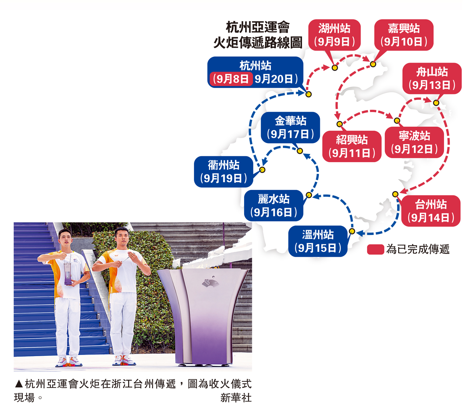 【大公報訊】據新華社報道:14日上午,杭州第19屆亞運會火炬傳遞活動在浙江省台州市舉行,亞運「薪火」邂逅「山海水城」,見證了一座城市的精氣神和奮鬥史。