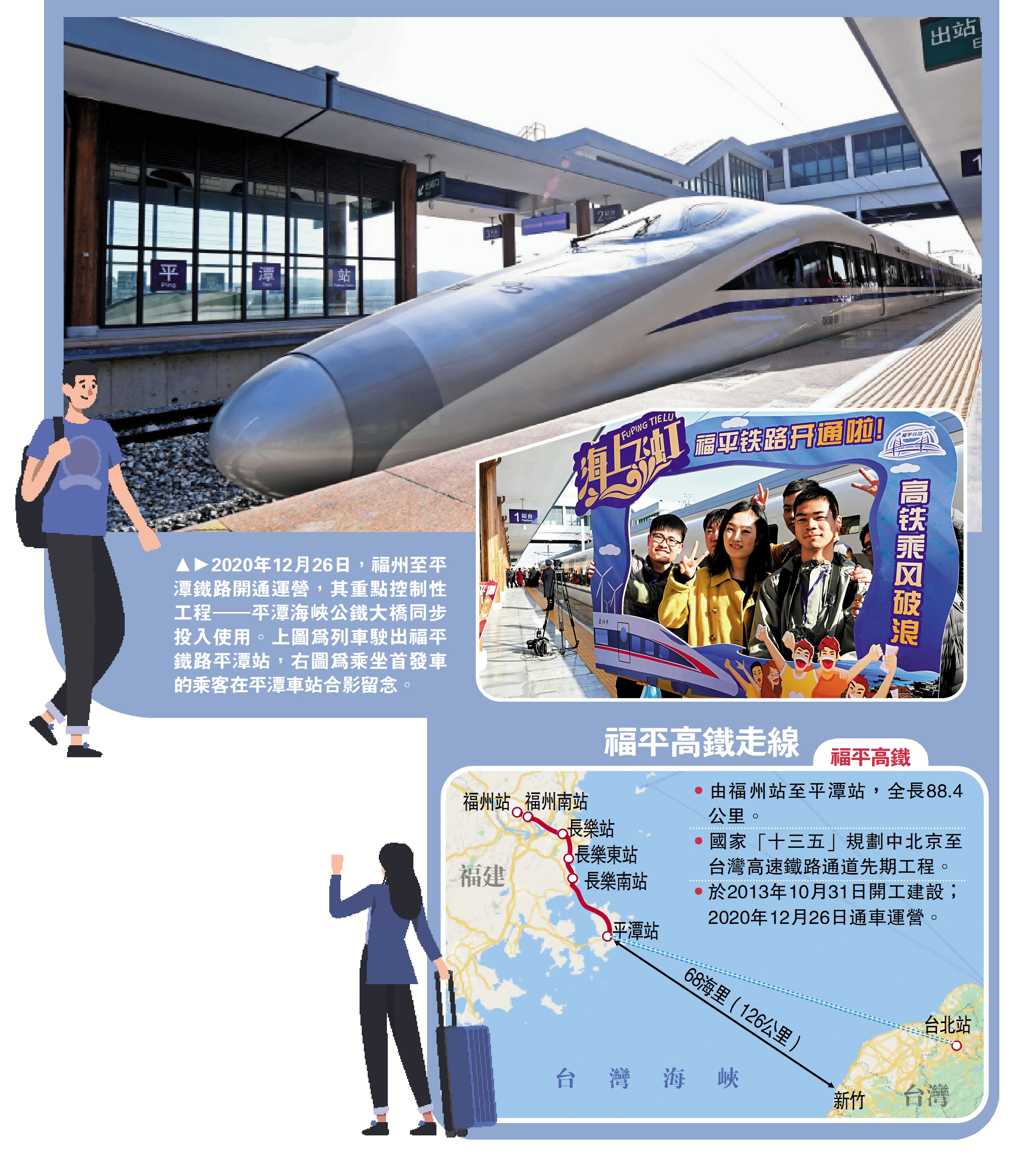 其中,在基礎設施聯通方面,叢亮表示,近年來,積極推動福建交通基礎設施規劃和建設,建成了綜合立體的交通網絡,已經具備了連接閩台兩地高速通道的工程技術能力,為提升海峽兩岸基礎設施聯通水平打下了良好基礎。他特別談道,當前,兩岸各界對兩岸基礎設施直接聯通期盼已久。「我們要共同努力,爭取早日實現兩岸民眾坐着高鐵輕鬆跨過台灣海峽的夢想,促進更多台灣地區的商品搭乘中歐班列等暢達歐亞市場,更好惠及兩岸同胞。」