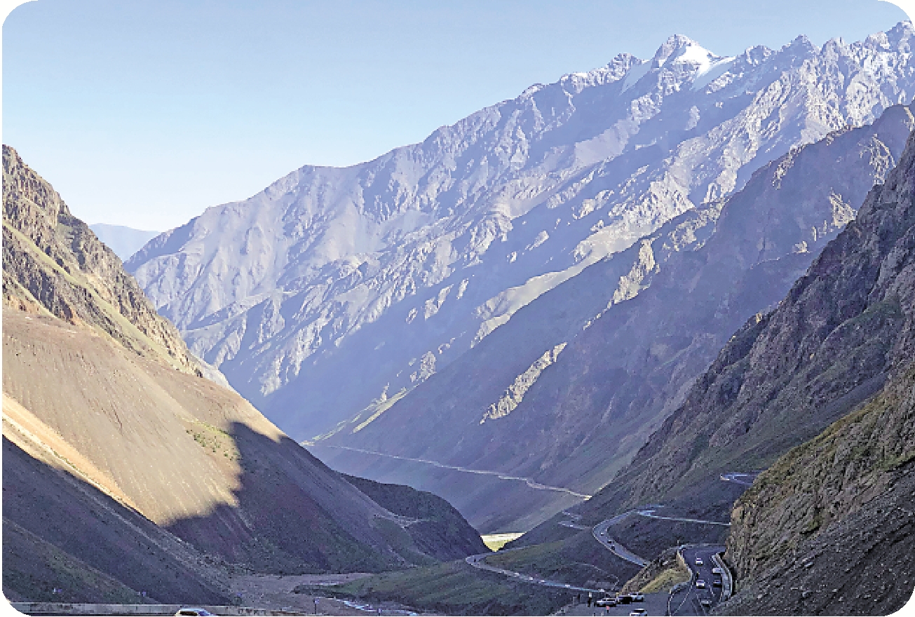 先說獨(山子)庫(車)公路。這原本是一條戰略公路,一九七四年動工,一九七九年全線通車,從北疆的獨山子到天山南麓的庫車,全長五百六十一公里。後來時移勢易,獨庫公路幾經改造升級之後,近年成為新疆最負盛名的景點,更是內地自駕遊一族心目中的聖地。網上有不少獨庫公路的視頻,據說今年夏天一堵車就是幾小時大半天,長達幾公里的車龍停在懸崖邊,蔚為奇觀。不過我們去的時候學校已經開學,自駕遊大減,我們幾乎一路暢通,偶爾被轉場準備過冬的羊群和牛群阻擋一陣子。連續幾天在平均兩千米以上的天山山脈中蜿蜒盤行,司機潘師傅老神在在,我坐在副駕駛位子,前面是崇山峻嶺,身旁是萬丈懸崖。有時大片森林,更多是亂石荒灘。有時進入丹霞地貌,萬山染紅。突然有飛瀑從天而降,疑是身處江南。忽見藍天下雪峰露出幾分神秘,山風吹來有點清涼。有人形容獨庫公路「一日遊四季,十里不同天」,果然名不虛傳,而這一幅幅令人驚嘆綿延千里的天山奇觀,在獨庫公路修建之前,可能從未與人類謀面。生命如此短暫,翻越天山沿途與大自然無語對話,不僅妙不可言,更是一種福分。