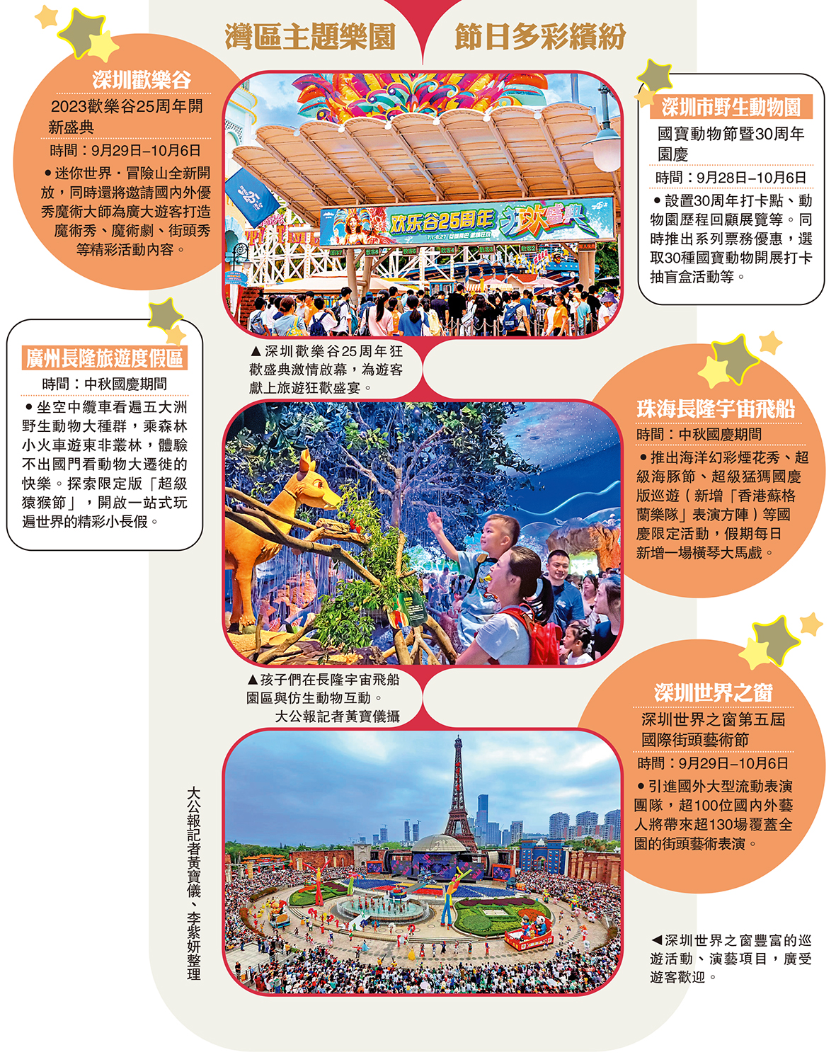 •推出海洋幻彩煙花秀、超級海豚節、超級猛獁國慶版巡遊(新增「香港蘇格蘭樂隊」表演方陣)等國慶限定活動,假期每日新增一場橫琴大馬戲。