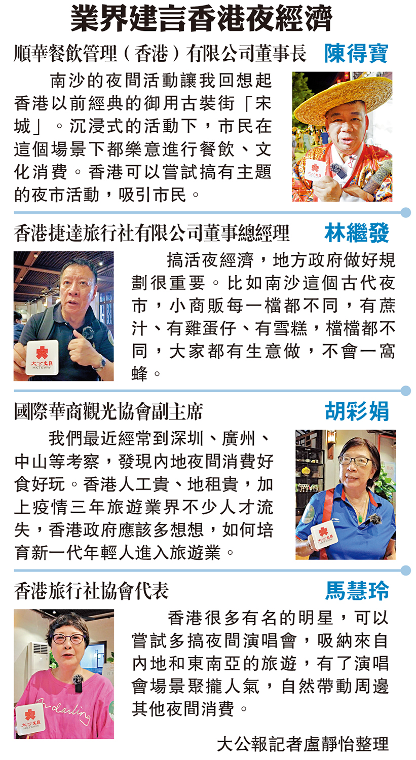 我們最近經常到深圳、廣州、中山等考察,發現內地夜間消費好食好玩。香港人工貴、地租貴,加上疫情三年旅遊業界不少人才流失,香港政府應該多想想,如何培育新一代年輕人進入旅遊業。