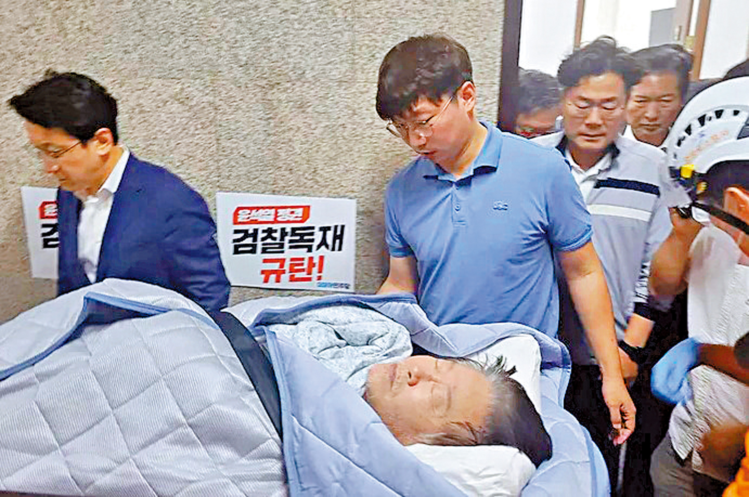 李在明自絕食以來身體狀態每況愈下,民眾和黨內人士紛紛勸他以身體為重,停止絕食。據悉,有人17日曾叫來救護車,但李在明仍堅持絕食,拒絕住院。