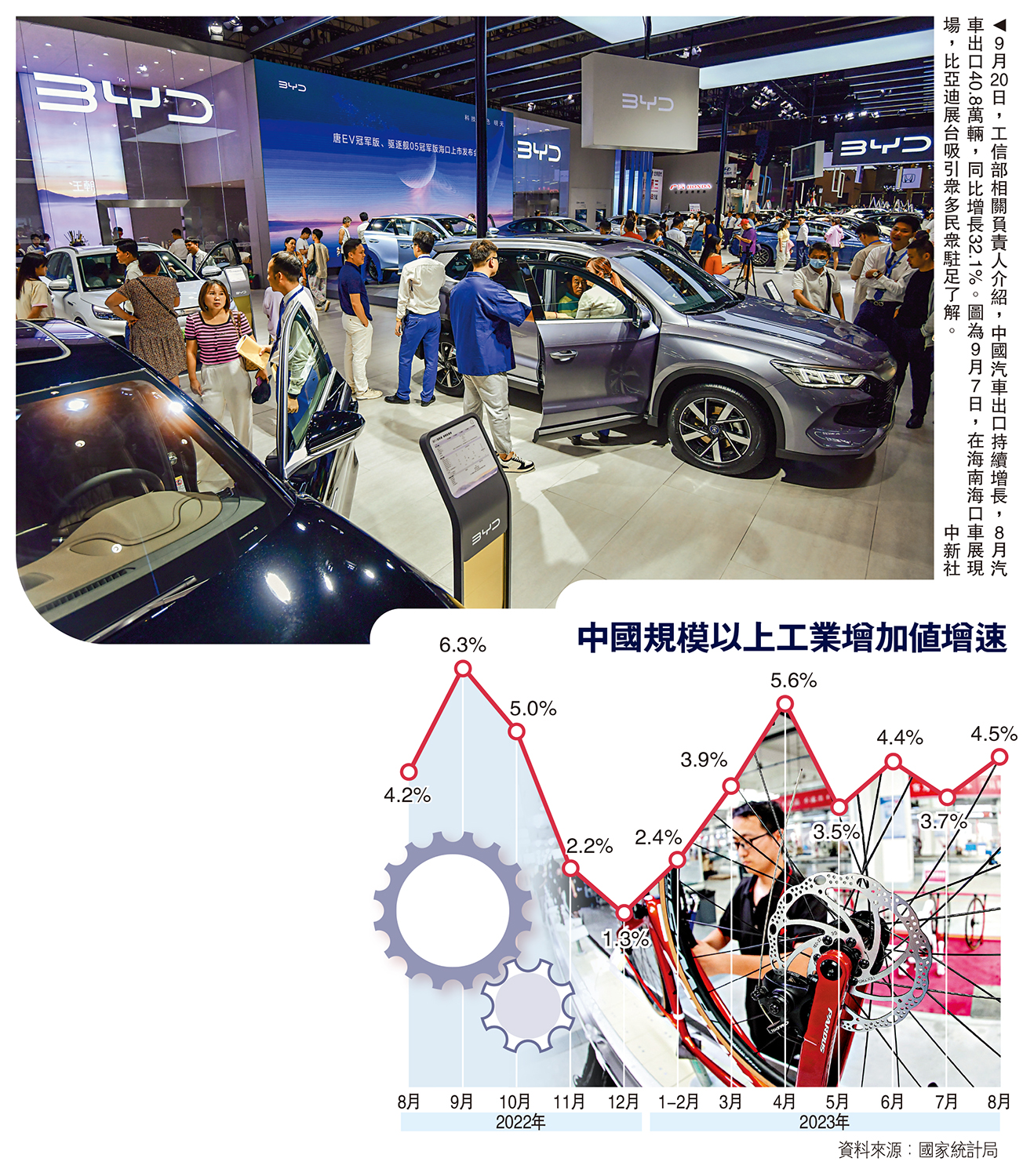 統計數據顯示,8月份,中國規模以上工業增加值和社會消費品零售總額增速有所恢復,進出口降幅收窄,居民消費價格由降轉漲,工業生產者出廠價格和企業利潤降幅持續收窄,全國城鎮調查失業率小幅回落,製造業PMI持續回升,經濟執行中的積極因素在積累、亮點在增多,社會預期有所好轉。