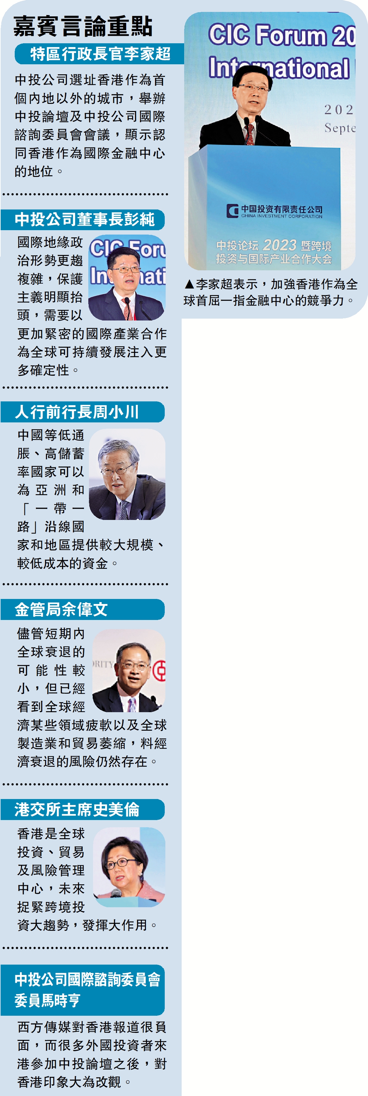 中投公司選址香港作為首個內地以外的城市,舉辦中投論壇及中投公司國際諮詢委員會會議,顯示認同香港作為國際金融中心的地位。