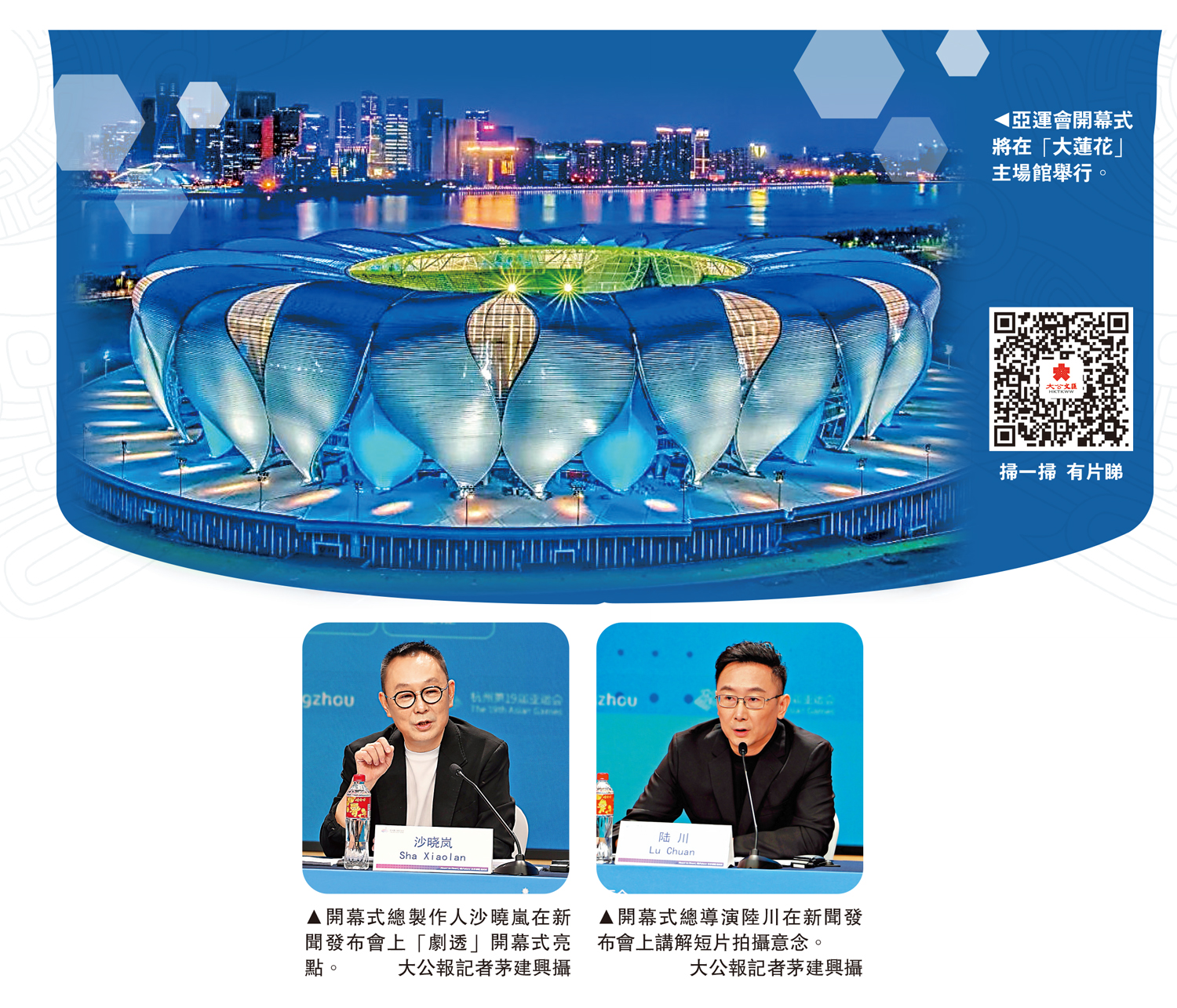 9月21日上午,杭州亞運會舉行開幕式籌備工作新聞發布會,提前「劇透」了部分亮點內容。「我們將以『數實融合』的形式完成主火炬點燃,打造亞運史上首個數字點火儀式。」開幕式總導演、總製片人沙曉嵐透露道,9月23日開幕式當晚,超過1億的數字火炬手將以一個個「光點」的形態匯聚於錢塘江上,形成一個具象的「數字人」,而這個「數字人」將踏着錢塘潮湧,奔向大蓮花體育場(開幕式主會場)的上空,躍入185米的立體網幕,與第六棒火炬手共同點燃主火炬塔。\大公報記者 俞晝