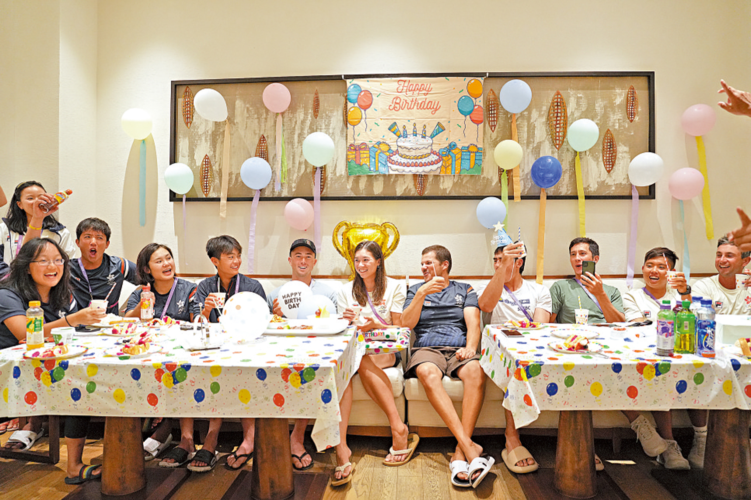 【大公報訊】記者俞晝報道:「小洛你好,今天你的就餐位置在最裏面,請隨我來。」在工作人員的引導下,中國香港代表隊帆船運動員洛雅怡走到了一排布置精美的餐桌前,忍不住「哇」的一聲驚呼了起來。原來,這一天(18日)是她的生日,而在前一天入住寧波亞運分村時,工作人員在徵求生日餐預約服務事項時,發現了這個「秘密」,便悄悄地為她布置了起來。