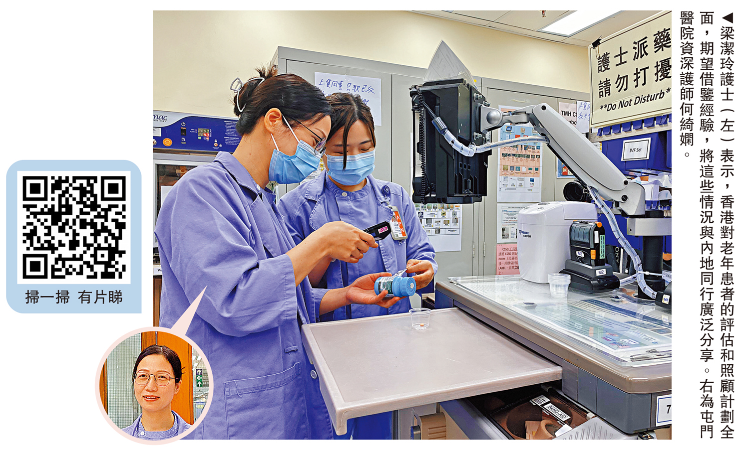 「兩地護士的合作可以起到事半功倍的作用,幫助到香港的醫護和病人,才是今次交流的意義……和病人建立了良好的護患關係,才能體現護理的價值和意義。」梁潔玲是在醫院管理局的「大灣區專業護理知識交流計劃」下、首批來香港交流的廣東省護士,正在屯門醫院進行交流合作,不僅帶來了內地的護理知識,亦幫助本地醫護在醫治病人的程序上更加暢順。