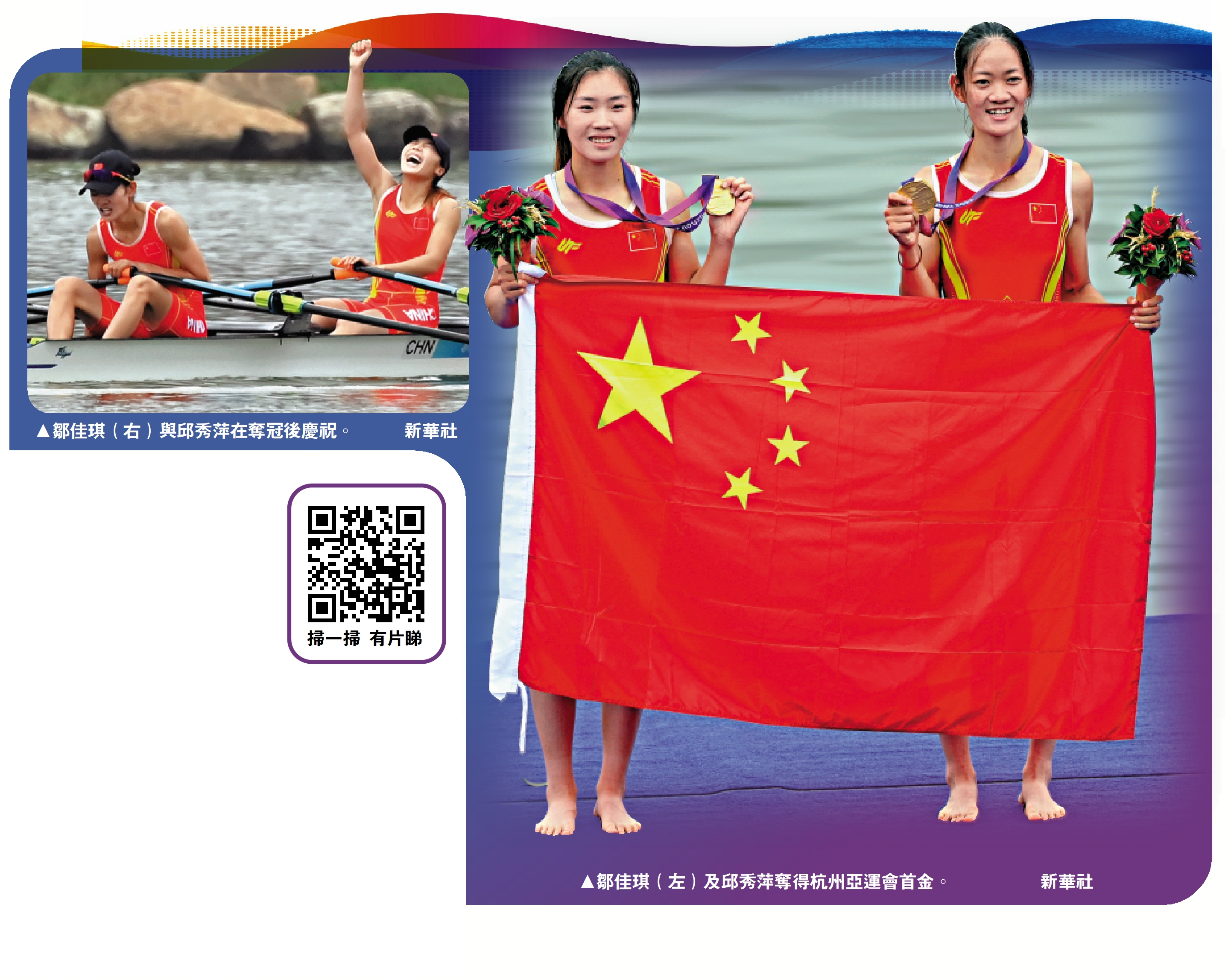 在賽後的新聞發布會上,她們透露了奪冠的秘訣,以及接下來的目標。鄒佳琪是東道主杭州桐廬縣人,她家距離比賽地富陽水上運動中心並不遠,可謂主場之主場。邱秀萍則是一位廣東姑娘,在比賽中,兩人配合十分有默契。