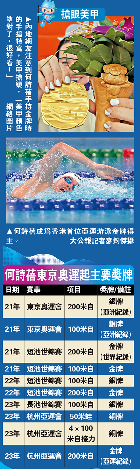 圖:何詩蓓東京奧運起主要獎牌