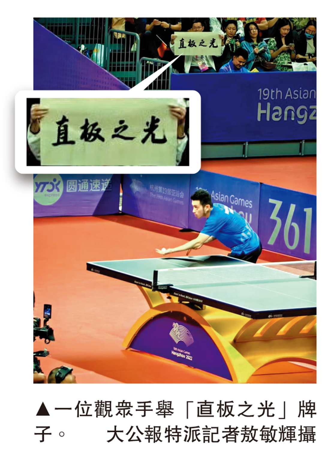 那位舉牌大哥必定是數十年的乒乓球愛好者,對直拍也必定有着真摯的情懷,黃鎮廷何嘗不是。那些高聲吶喊的年輕觀眾,在數十年後,對乒乓球運動、技術、運動員,會不會有某種情懷,值得我們思考和暢想。\大公報特派記者敖敏輝
