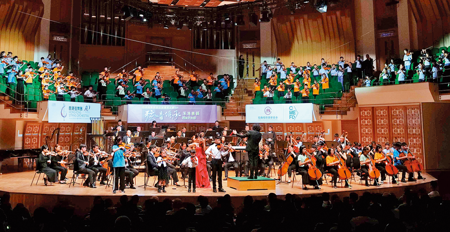 香港弦樂團昨日(2日)在香港文化中心音樂廳舉辦「弦音傳承深港樂韻」國慶音樂會。樂團成員與深港兩地青少年同場演出,讓今次音樂會別具意義。\大公報記者 顏 琨