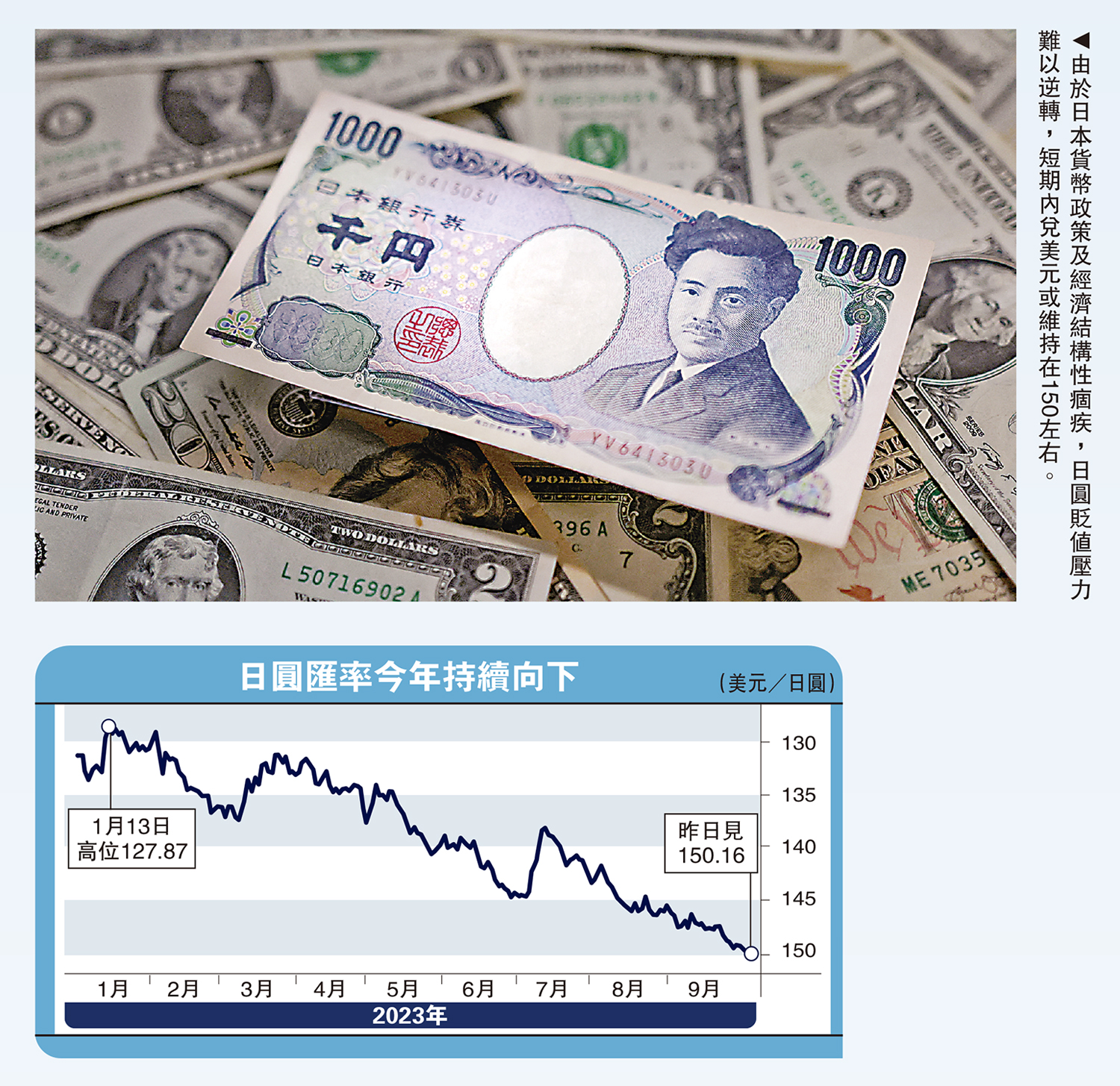 與此同時,日圓匯率加速貶值引起市場極大關注,宏觀基本面的向好仍無法扭轉日圓貶值走勢。截至9月末,年內日圓兌美元貶值13%,兌其他貨幣匯率亦持續下跌。展望未來,筆者認為,雖然日本經濟復甦有支撐,但受制於日本貨幣政策及經濟結構性痼疾,日圓貶值壓力難以逆轉,短期內日圓兌美元或將維持在150左右,中長期反彈中樞在130左右,很難回到過去的100至110水平。