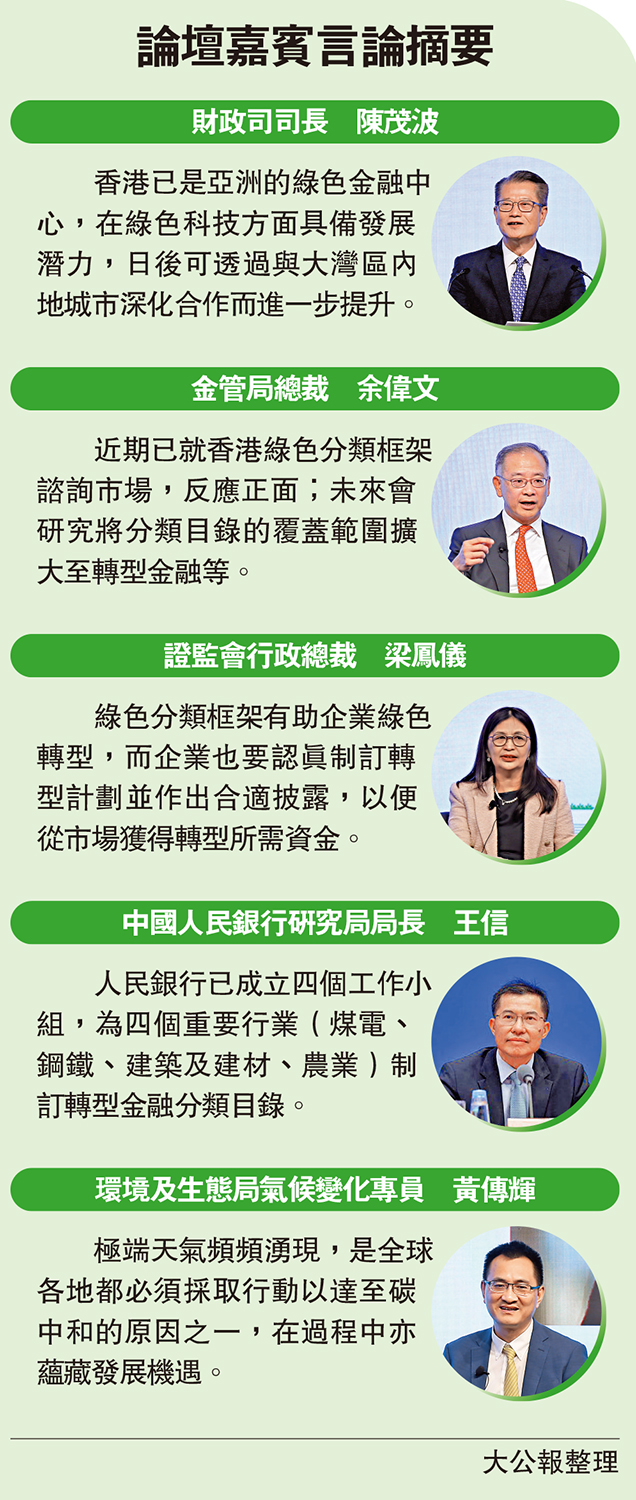近期已就香港綠色分類框架諮詢市場,反應正面;未來會研究將分類目錄的覆蓋範圍擴大至轉型金融等。