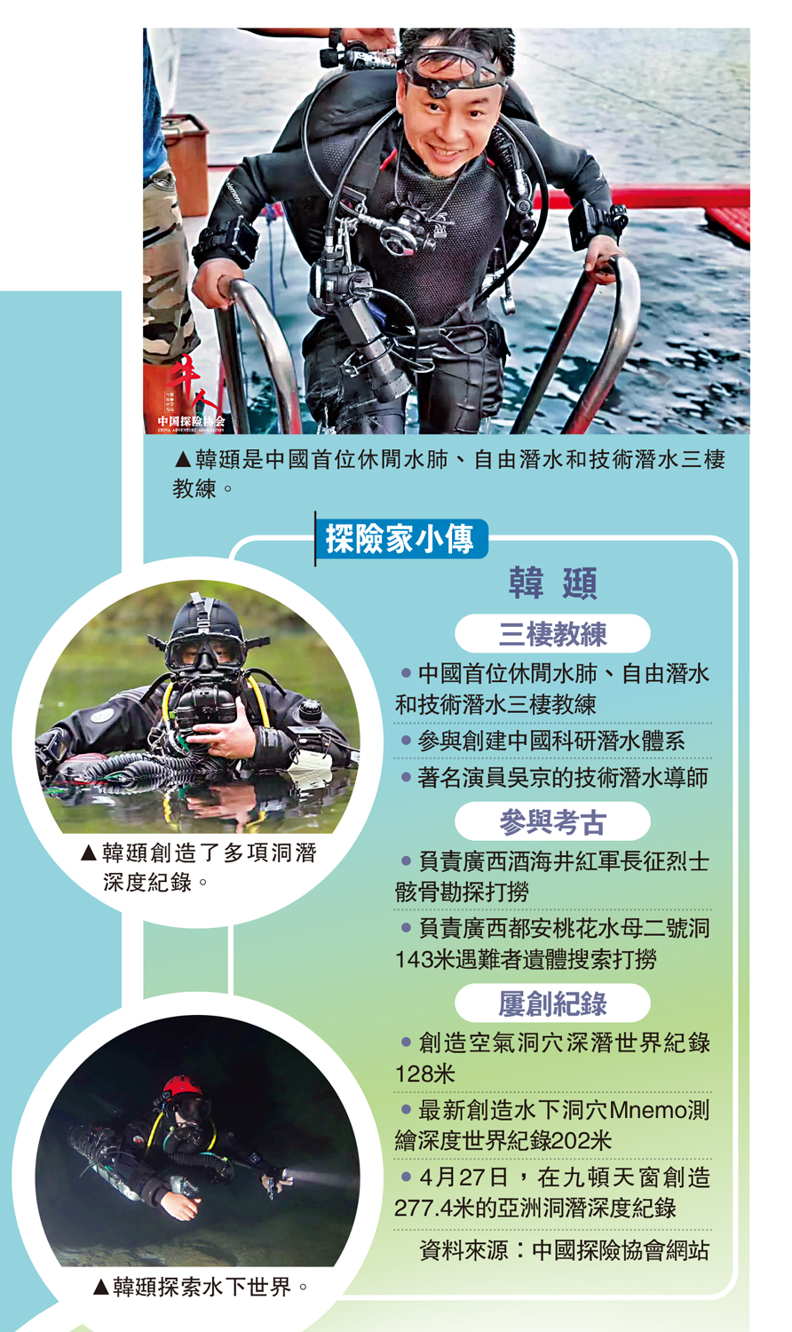 •中國首位休閒水肺、自由潛水和技術潛水三棲教練