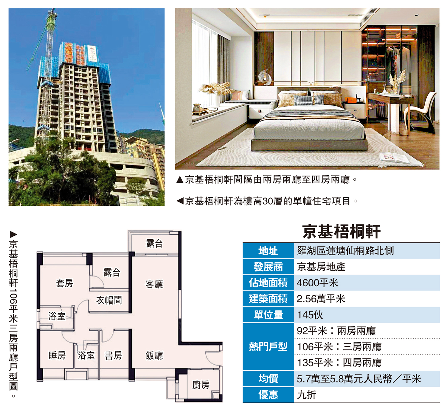 京基梧桐軒每平米均價為5.7萬至5.8萬元(人民幣,下同),總價由492萬至1004萬元(約527萬至1075萬港元),目前在備案價基礎上打九折,之前國慶節更有八五折優惠。