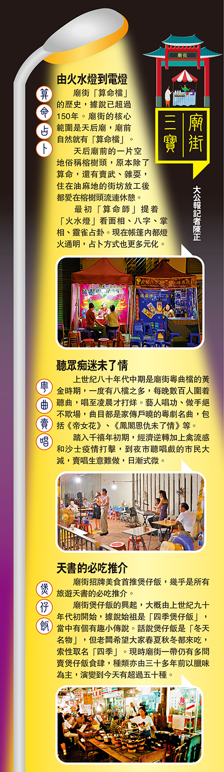 廟街「算命檔」的歷史,據說已超過150年。廟街的核心範圍是天后廟,廟前自然就有「算命檔」。