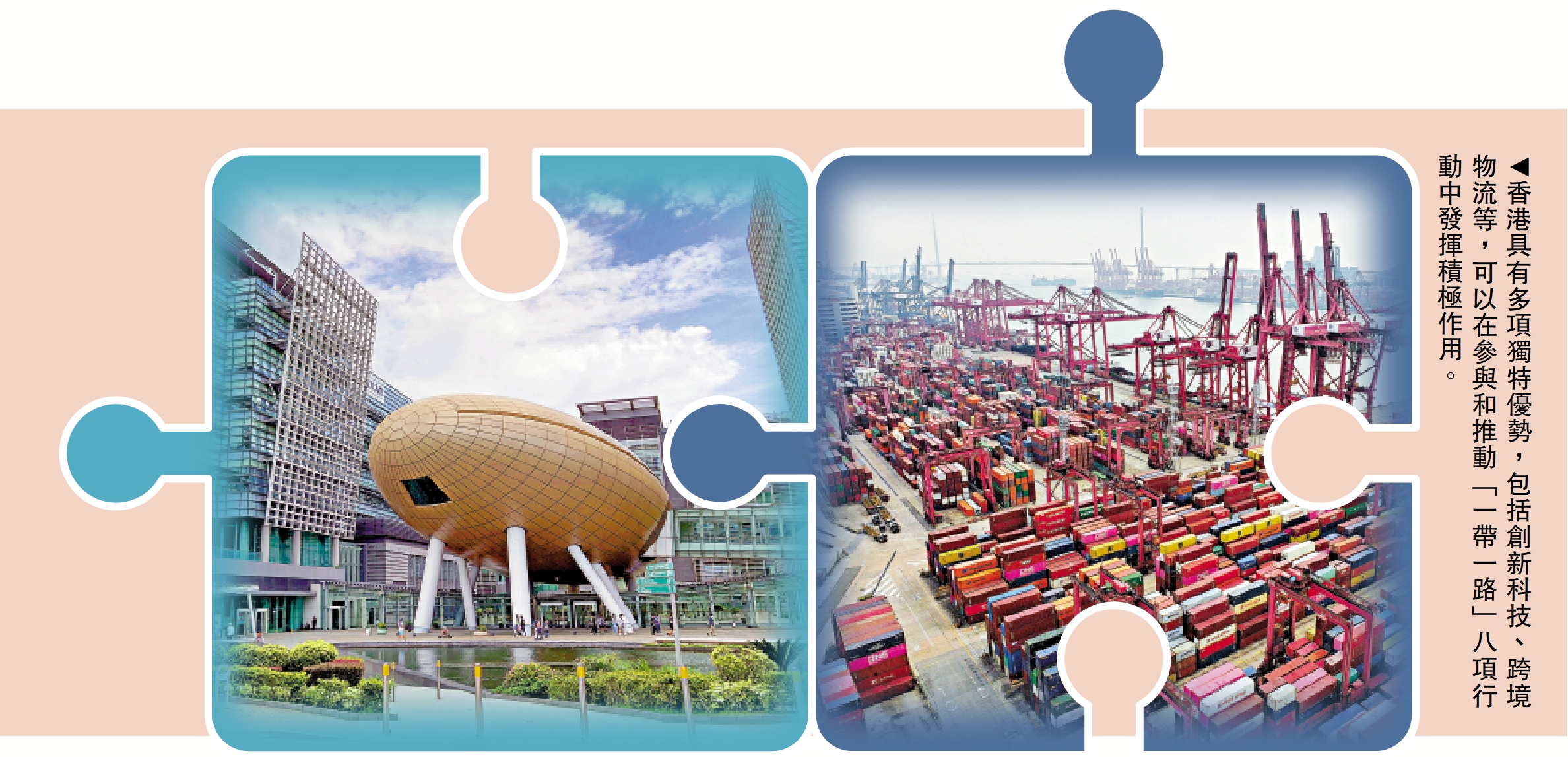 八項行動當中包括支持建設開放型世界經濟,主動對照國際高標準經貿規則,深入推進跨境服務貿易和投資高水平開放等。全國政協常委、中國和平統一促進會香港總會會長姚志勝指出,香港具有「背靠祖國、聯通世界」的獨特優勢,與多個「一帶一路」參與國保持長遠而緊密的經貿關係,未來要着力構建與「一帶一路」沿線地區如東盟、中東等的合作平台,同時鞏固香港國際金融中心角色,為國家打通更多多邊經貿合作新管道,用好香港所長,服務「一帶一路」高質量發展所需。