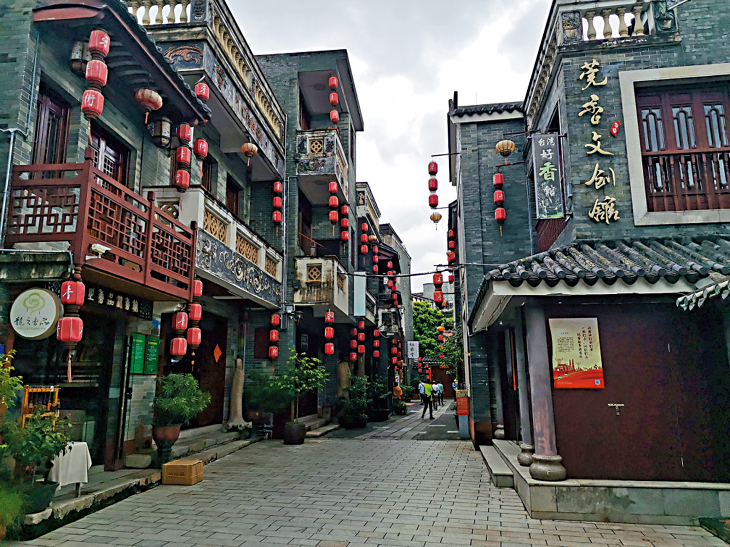 位於東莞市寮步鎮的牙香街,是國家級非物質文化遺產老街,彎曲的石板街道兩旁數十棟青磚黛瓦的古舊樓房,保留着明清時期的嶺南建築風格,外觀古樸清雅。遊客通過一座牌坊踏進這條古老街道,彷彿走進一條時光隧道,周圍飄溢着淡淡的「莞香」,令人心曠神怡,感覺奇妙。