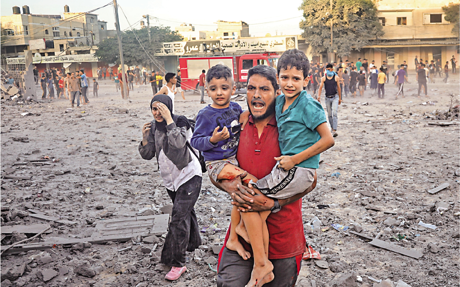 受以軍持續轟炸和燃料短缺影響,加沙35家醫院中至少16家被迫停運,72家基層健康服務診所中的51家也已關閉。《華盛頓郵報》報道稱,當受傷的兒童被送到醫院時,醫生能拯救他們生命的辦法越來越少。加沙南部汗尤尼斯市納賽爾醫院兒科主任法拉說,以軍投下的炸彈殺傷力極大,很多兒童被送來的時候已是血肉模糊,有人肢體殘缺,有人嚴重燒傷,還有人內臟出血。在法拉身後,一名渾身纏着紗布的兒童正在遭受腎臟出血的折磨,隔壁病床上的兒童不僅腦出血,身上還布滿燒傷。