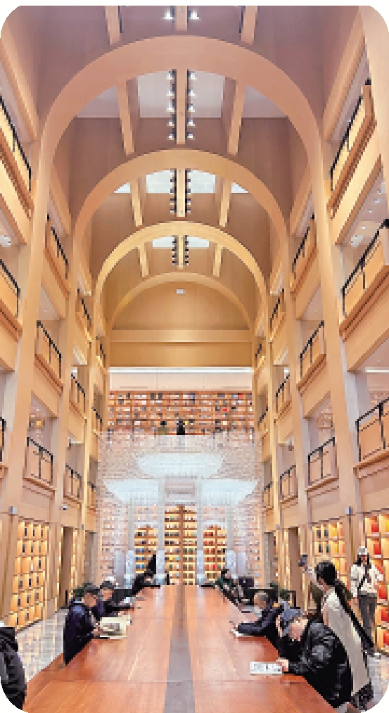 到訪當日,徐家匯書院館長助理蘇華為我們介紹書院的建築風格、藏書品類、科技賦能、配套活動及特色打卡景點種種。書院位處上海歷史悠久、極富人文氣息的徐匯區,因應區位特色,書院內外亦隨處可見東西交匯之元素:其建築外部由奇普菲爾德事務所設計,內部空間布局則由中國著名建築師俞挺操刀;門口「徐家匯書院」五個大字為明代海派文化奠基人、中西文化交流和中國近代科技事業先驅者徐光啟書法集字而成,而這座矗立在二十一世紀當代上海的公共圖書館,其東西古今交互往來之建造與運營風格,其緊隨互聯網趨勢發展的線上線下協同模式,莫不與徐光啟及其所開創的科學與創意精神,十足契合。